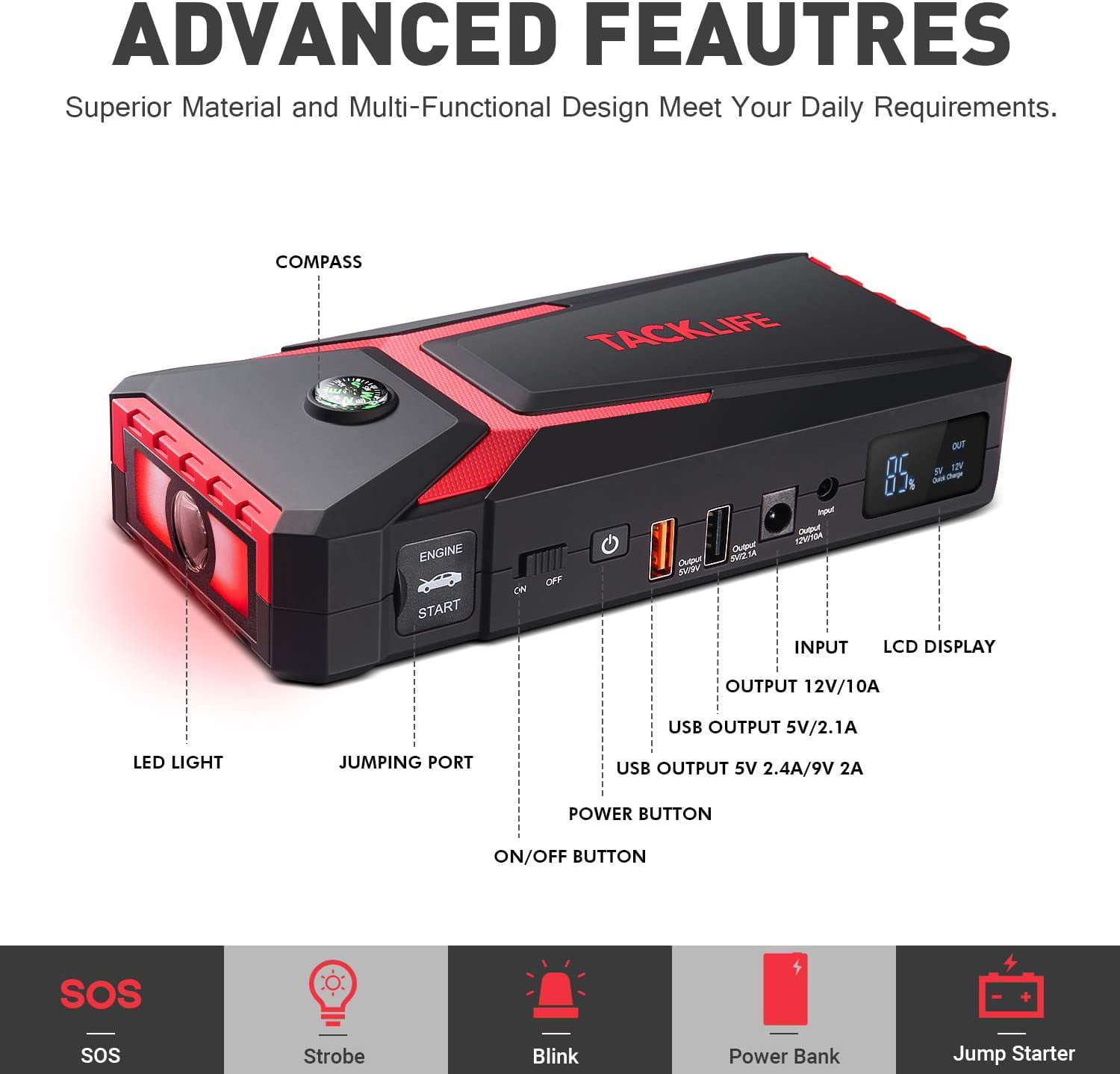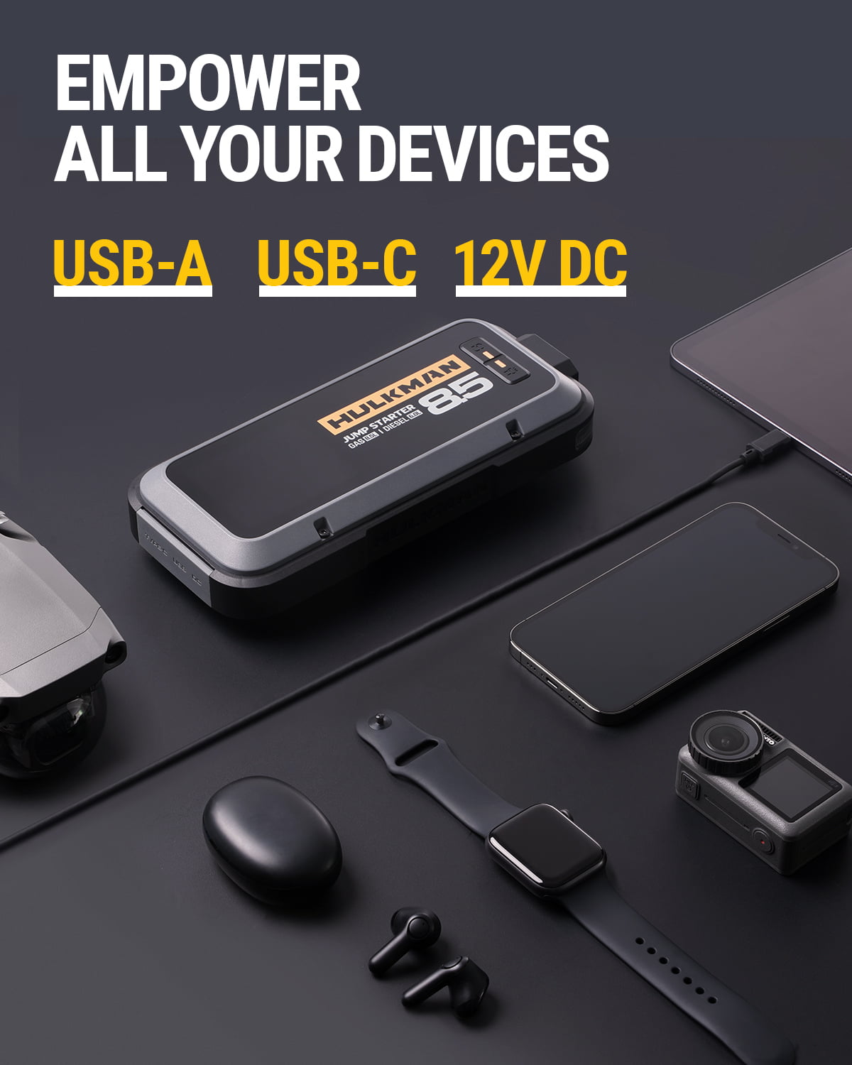 HULKMAN Alpha 85 Jump Starter 2000 Amp Portable Car Starter with LED Display for up to 8.5L Gas and 6L Diesel Engines