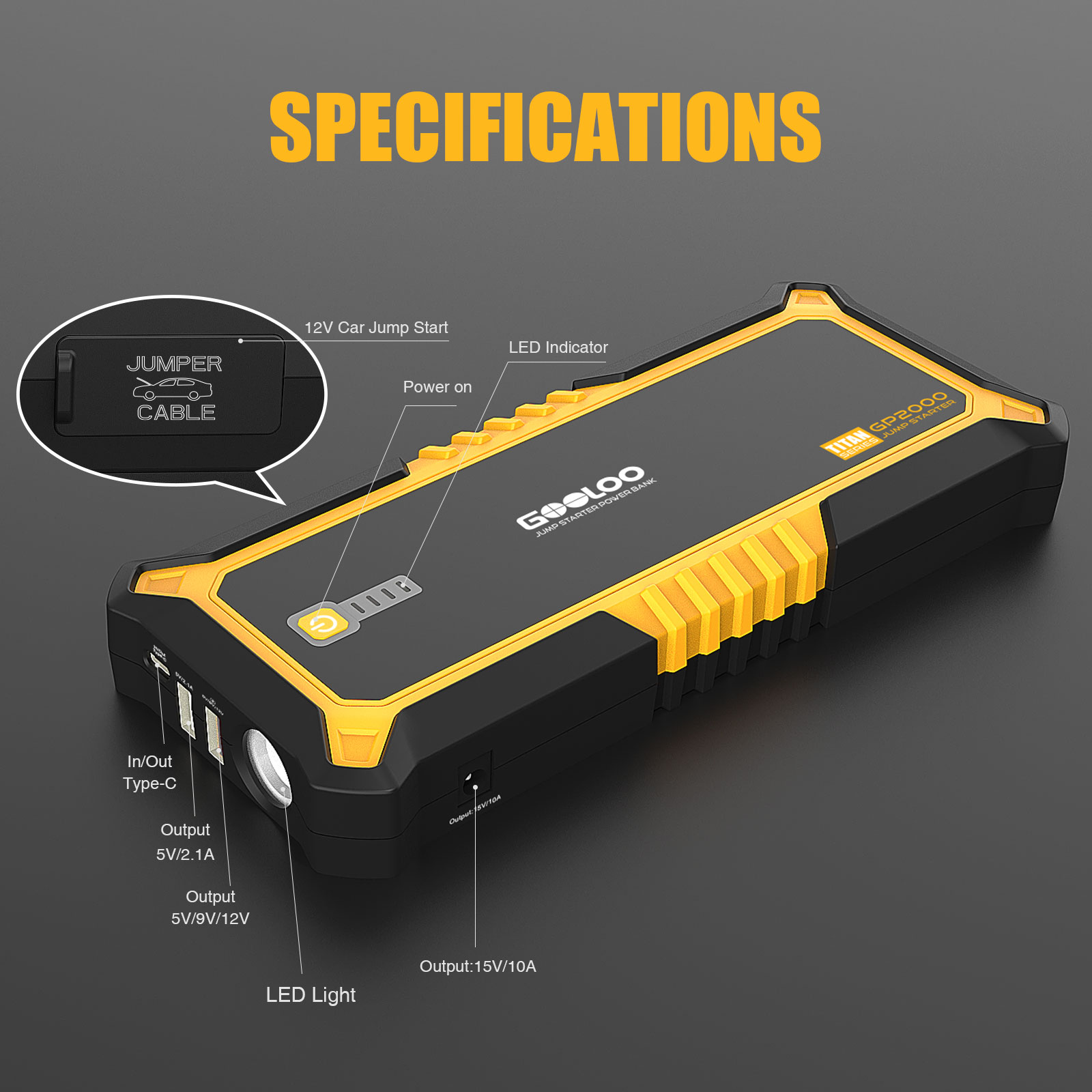 GOOLOO Car Jump Starter.GP4000 4000A Peak 12V for All Gas and Up to 10.0L Diesel Engine.Portable SuperSafe Auto Battery Booster Pack with USB Quick Charge and Type C Port