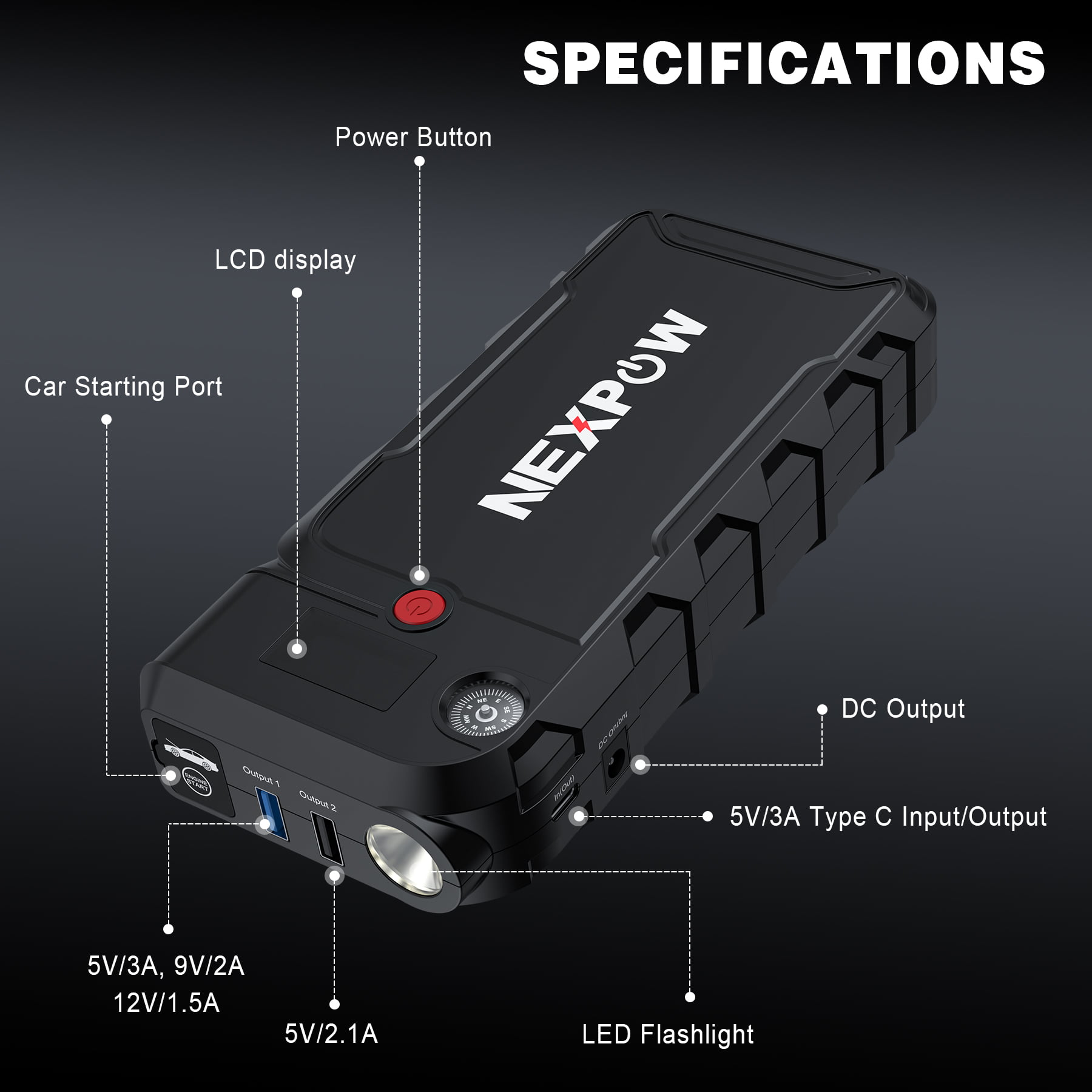 NEXPOW Battery Jump Starter - 3000A Peak 23800mAH Car Jump Starter (up to 9.0L Gas or 8.5L Diesel Engine) - 12V Portable Battery Booster with LCD Display