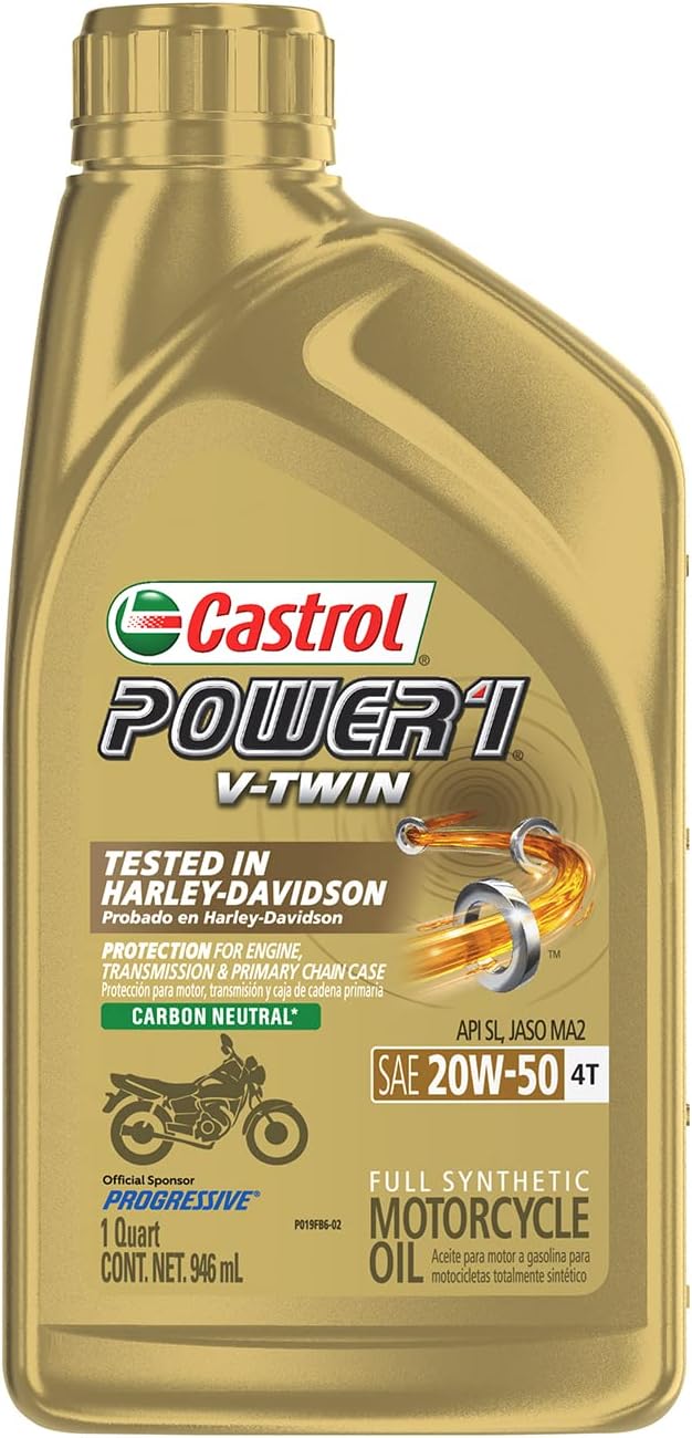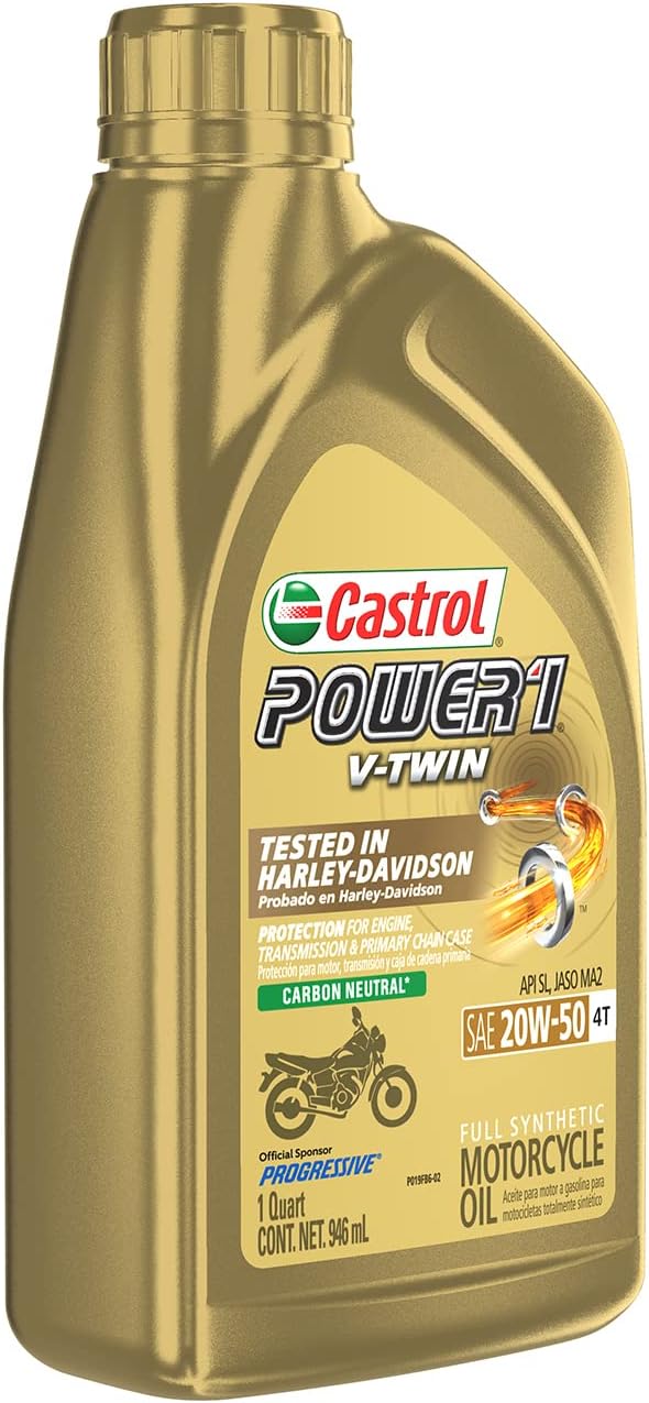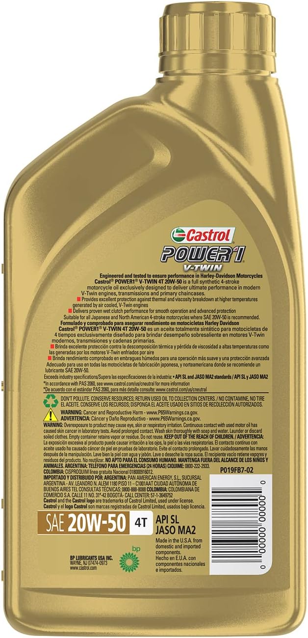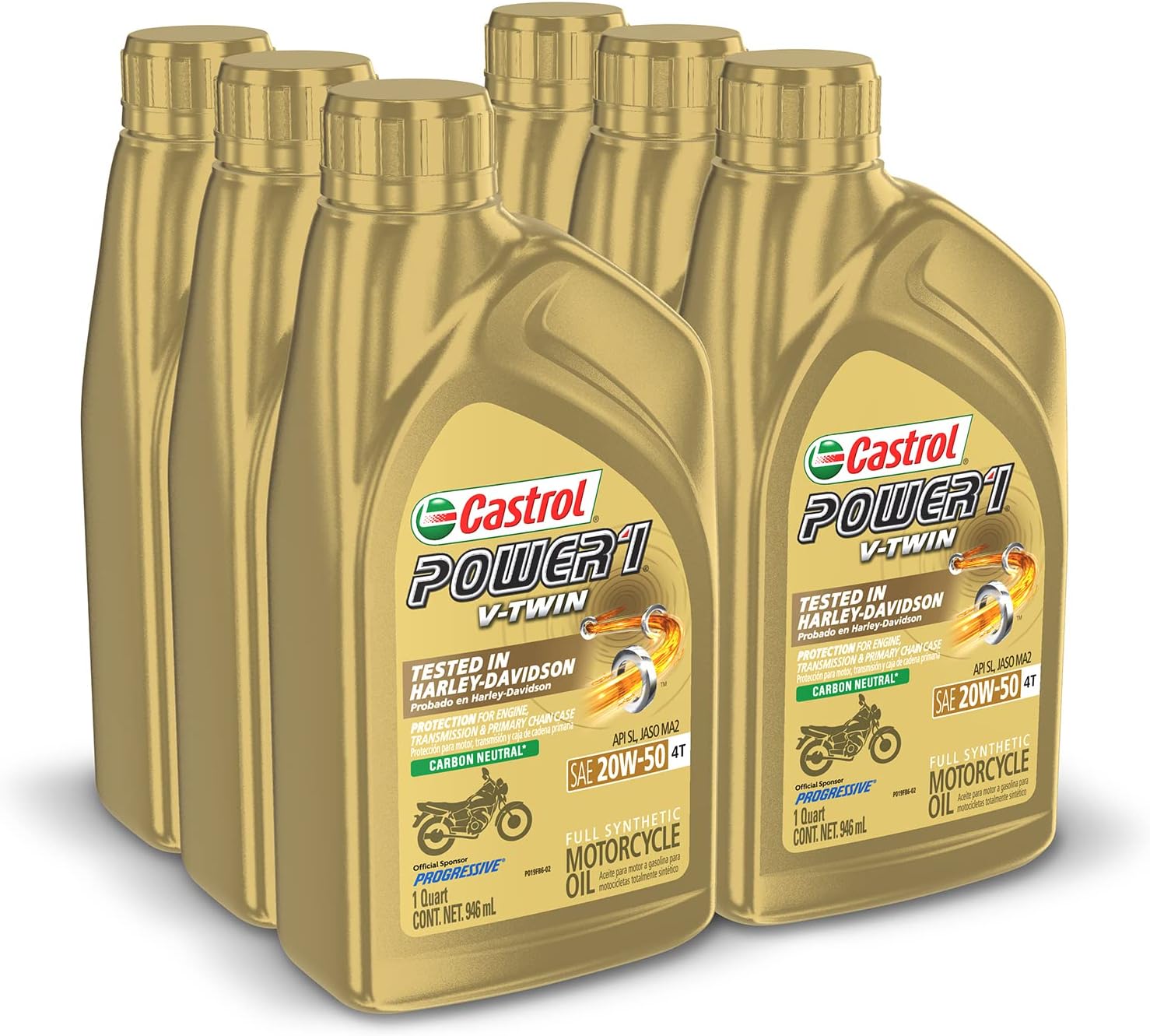 Castrol Power1 V-Twin 20W-50 Full Synthetic Motorcycle Oil. 1 Quart. Pack of 6