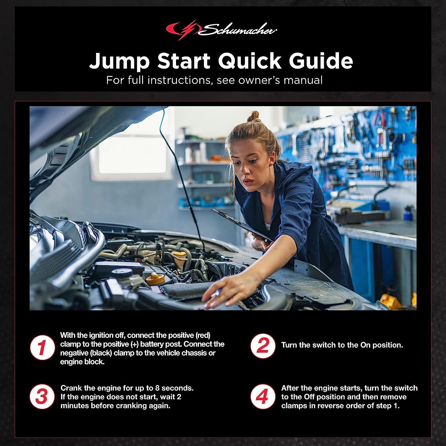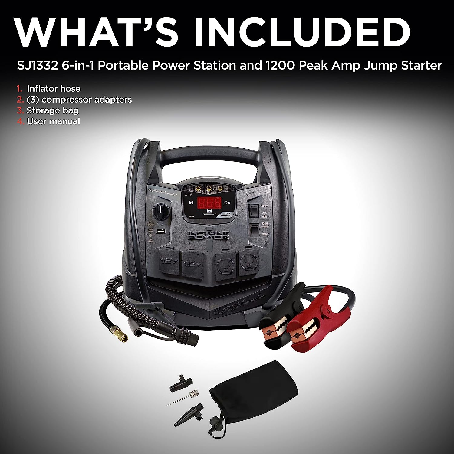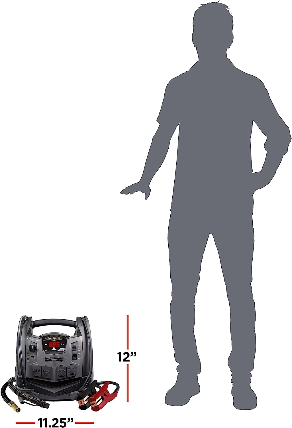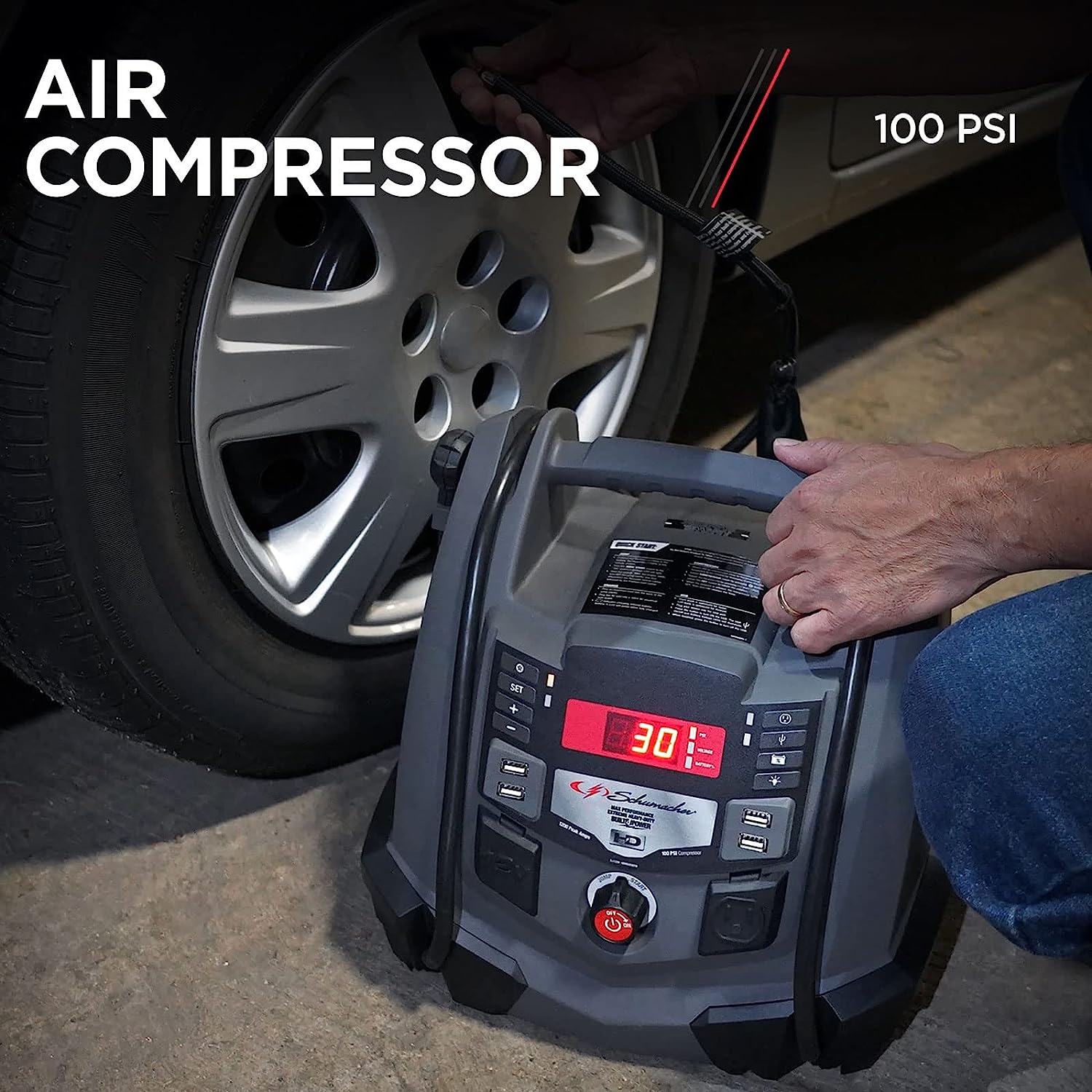 Schumacher SJ1332 Rechargeable AGM Jump Starter for Gas Diesel Vehicles - 1200 Amps with Air Compressor and AC. 12V DC. USB Power Station
