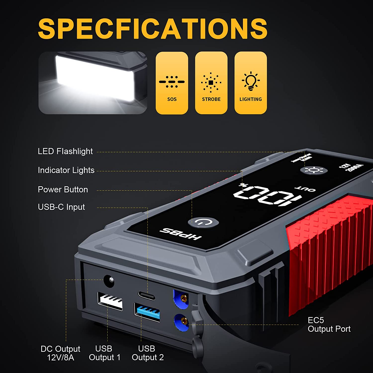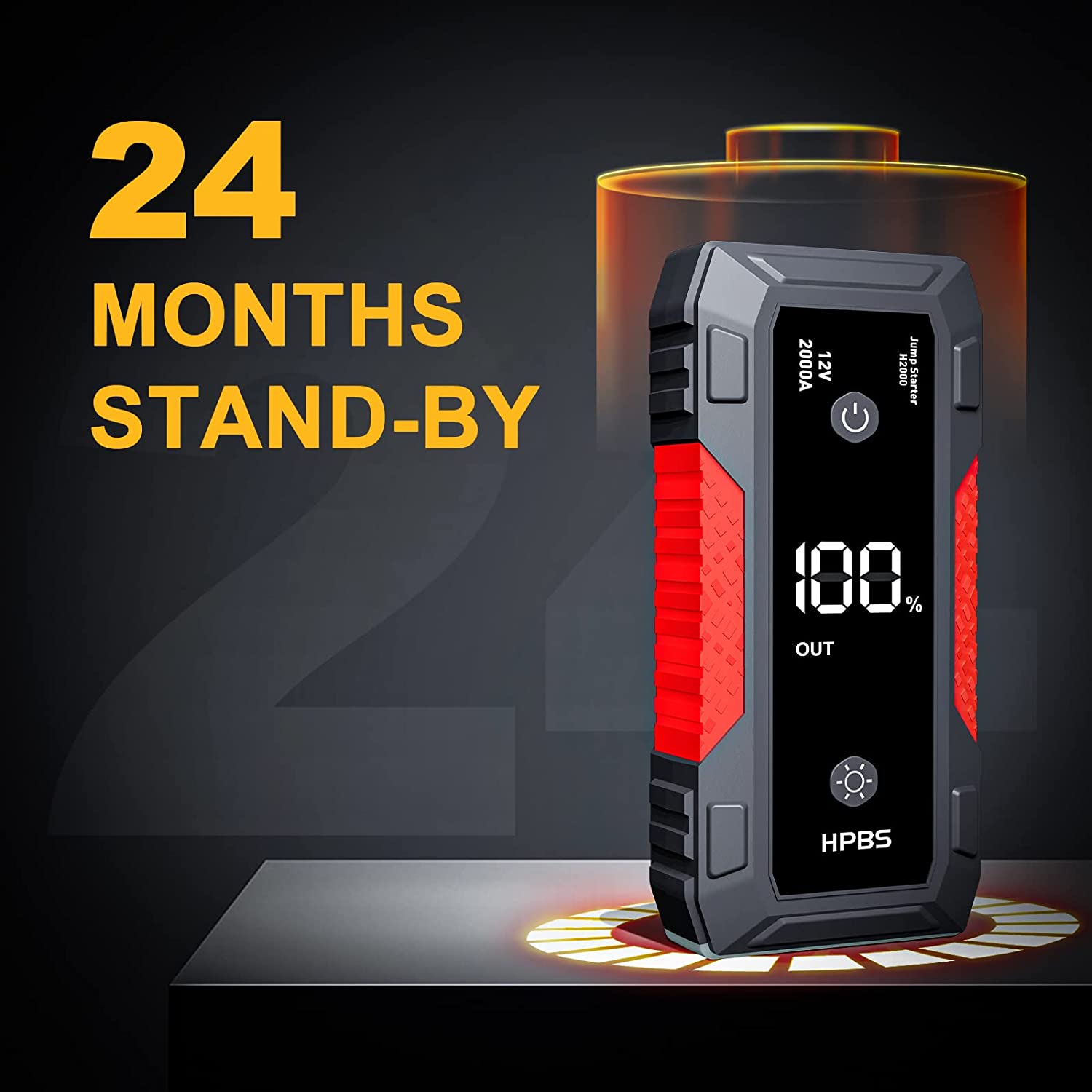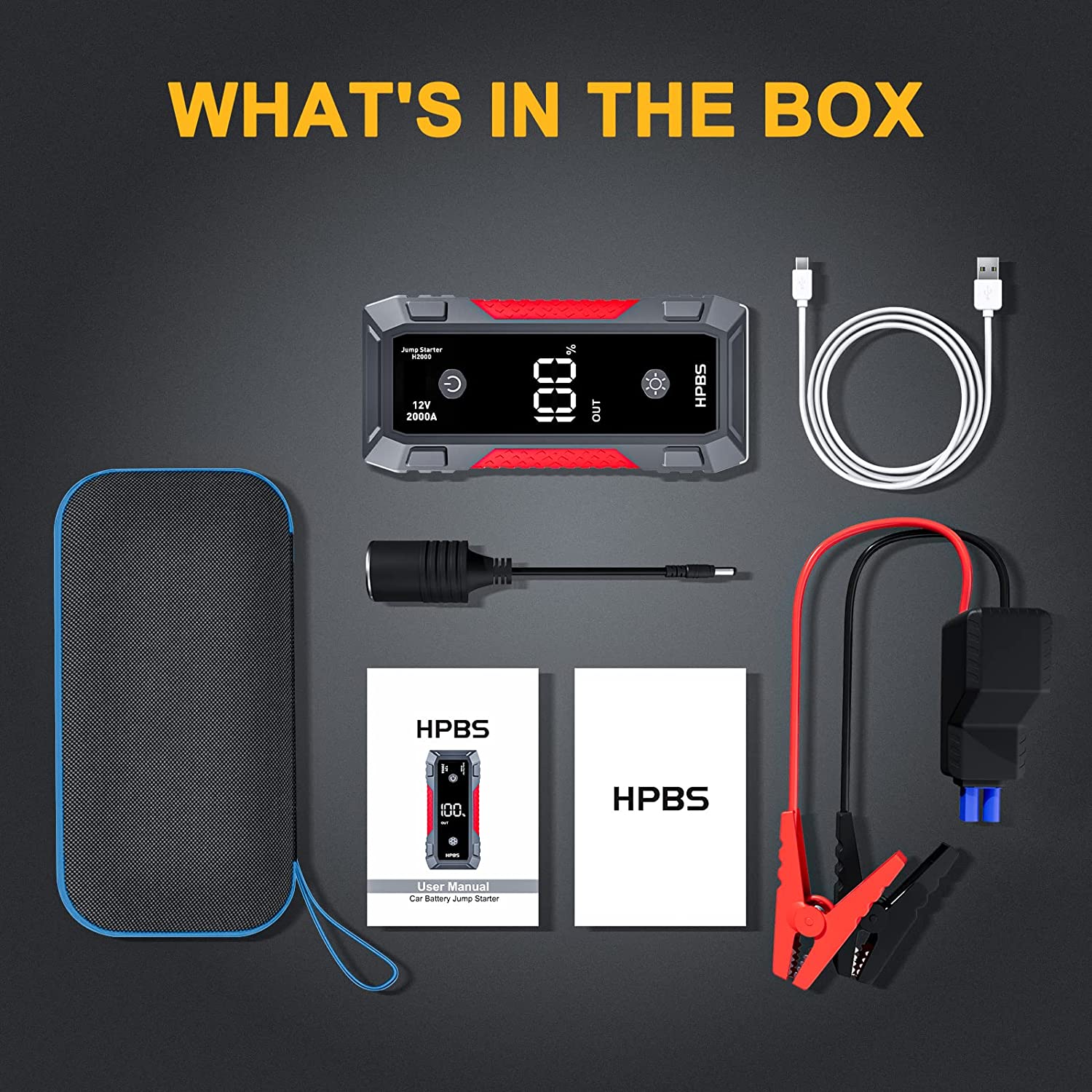 HPBS Jump Starter - 2000A Jump Starter Battery Pack for Up to 8L Gas and 6.5L Diesel Engines. 12V Portable Car Battery Jump Starter Box with 3.0″ LCD Display (Red)