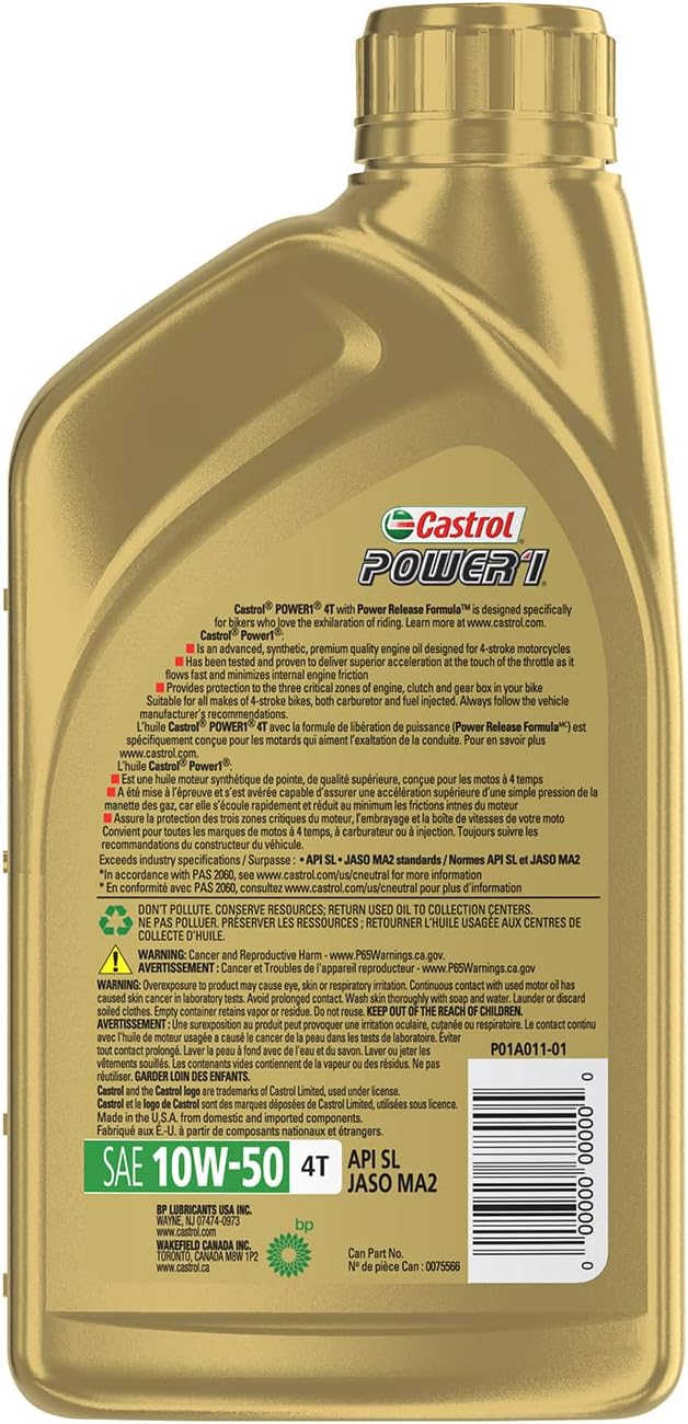 Castrol Power1 4T 10W-50 Full Synthetic Motorcycle Oil. 1 Quart. Pack of 6