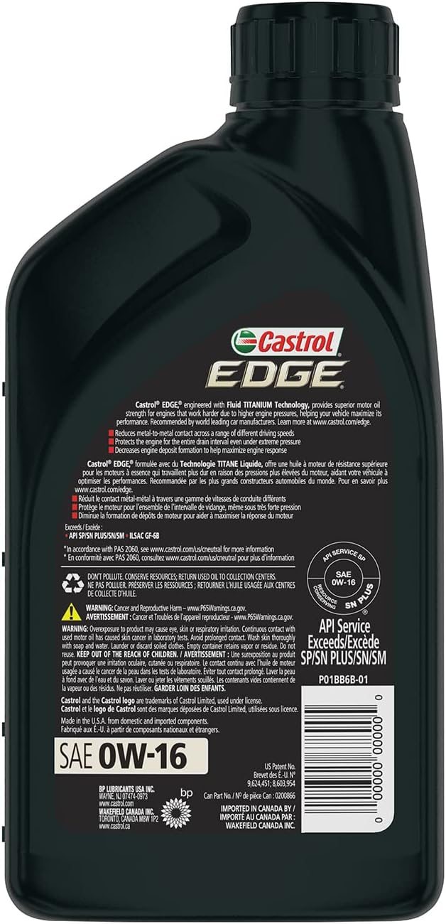 Castrol EDGE 10W-16 Advanced Full Synthetic Motor Oil. 1 Quart. Pack of 6