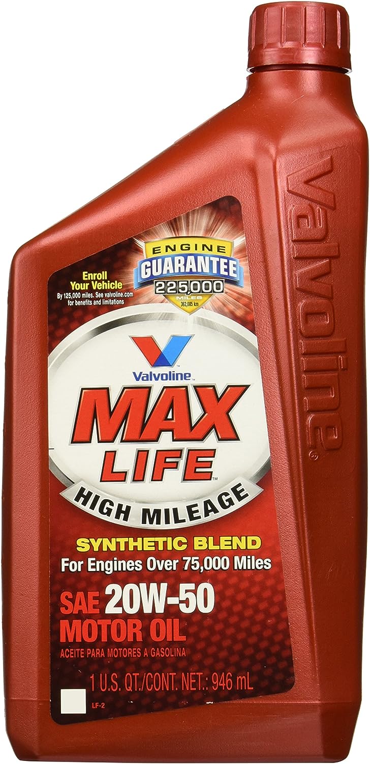 Valvoline High Mileage with MaxLife Technology SAE 20W-50 Synthetic Blend Motor Oil 1 QT. Case of 6