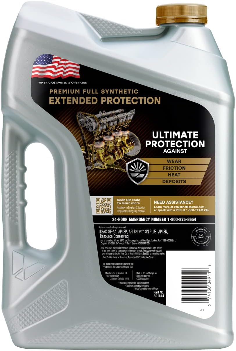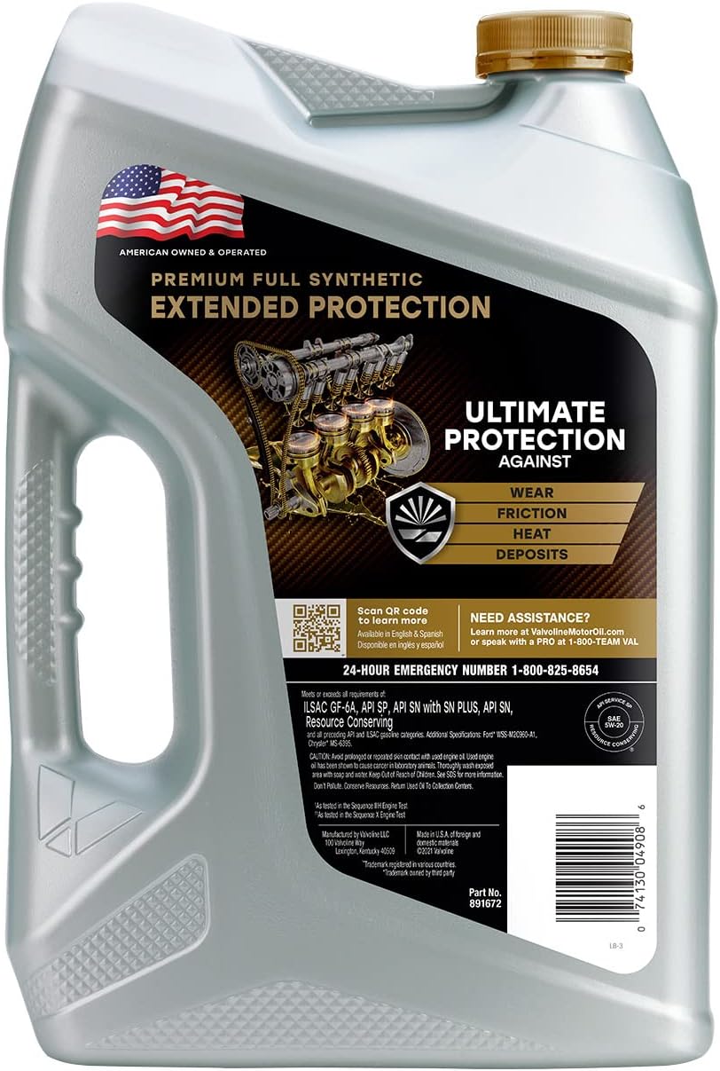 Valvoline Extended Protection SAE Full Synthetic Motor Oil SAE 0W-20 5 QT. Case of 3
