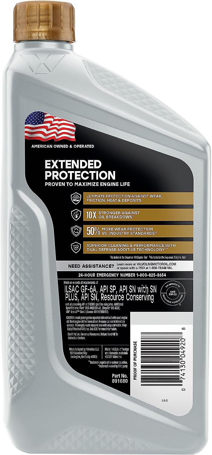 Valvoline Extended Protection SAE Full Synthetic Motor Oil SAE 5W-20 1 QT. Case of 6