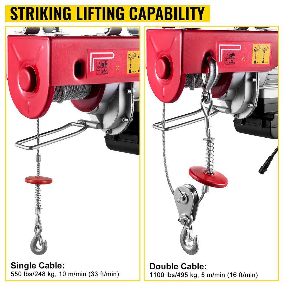 VEVOR DDHLWXYK1100B0001V1 1100 lbs. Electric Hoist 110-Volt Electric Winch Lift Single/Double Slings with Wireless Remote Control for Factories