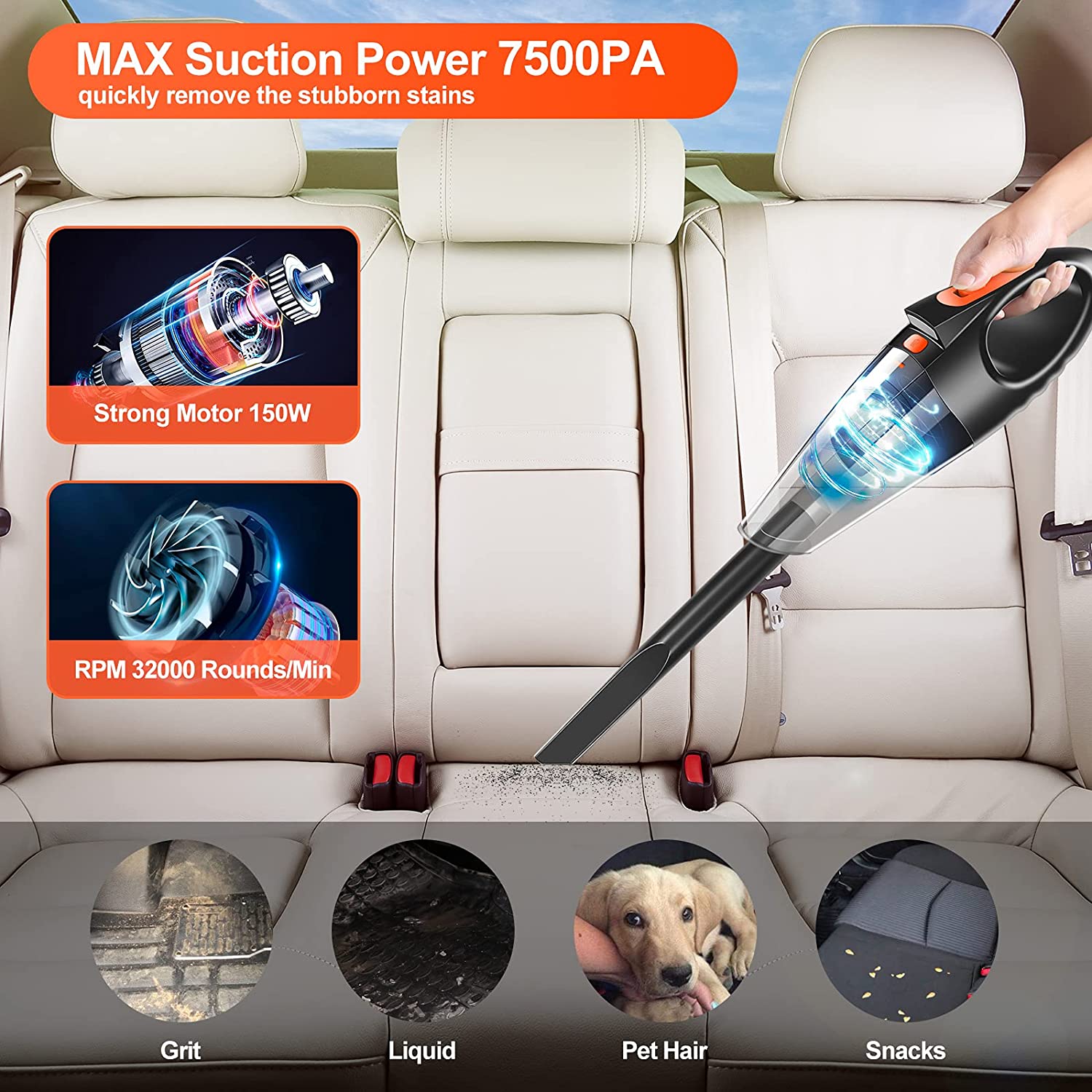 Niecarva Car Vacuum. Handheld Vacuum Cleaner for Car with LED Light 16.4 Ft Cord