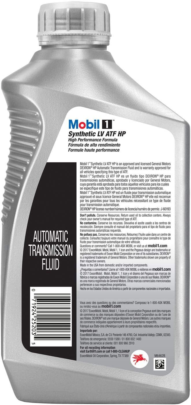 Mobil 1 Full Synthetic LV Automatic Transmission Fluid HP. 6-Pack of 1 quarts