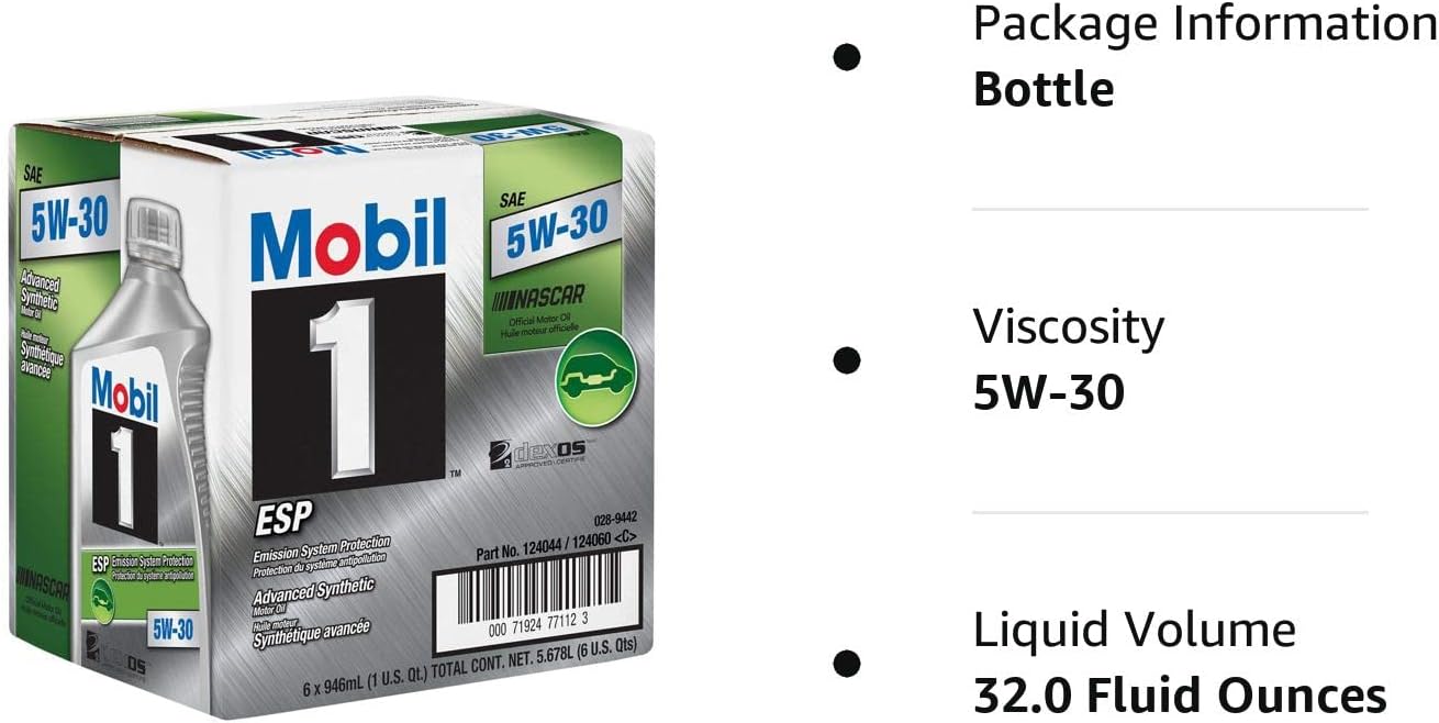 Mobil 1 124044 ESP Formula Engine Oil 5W30 1 Quart Bottles Set of 6