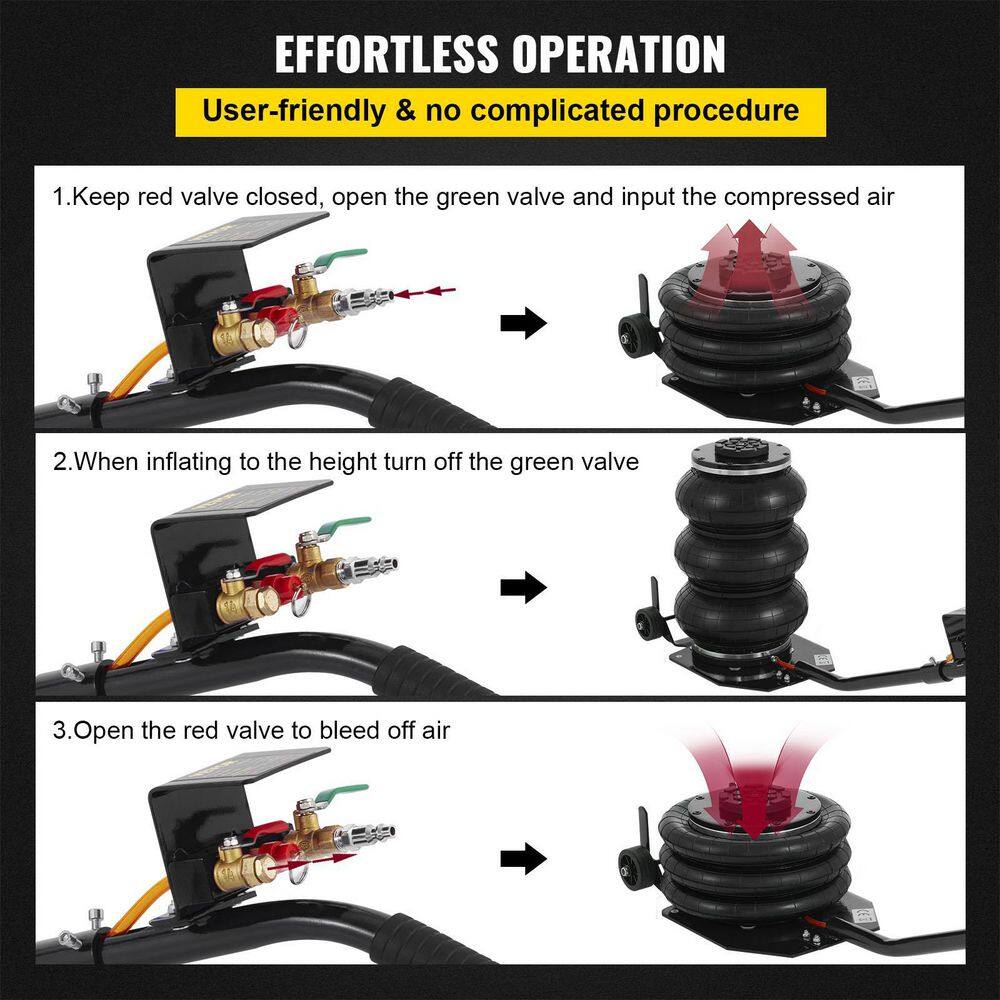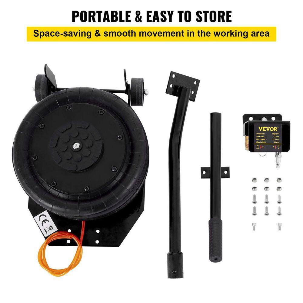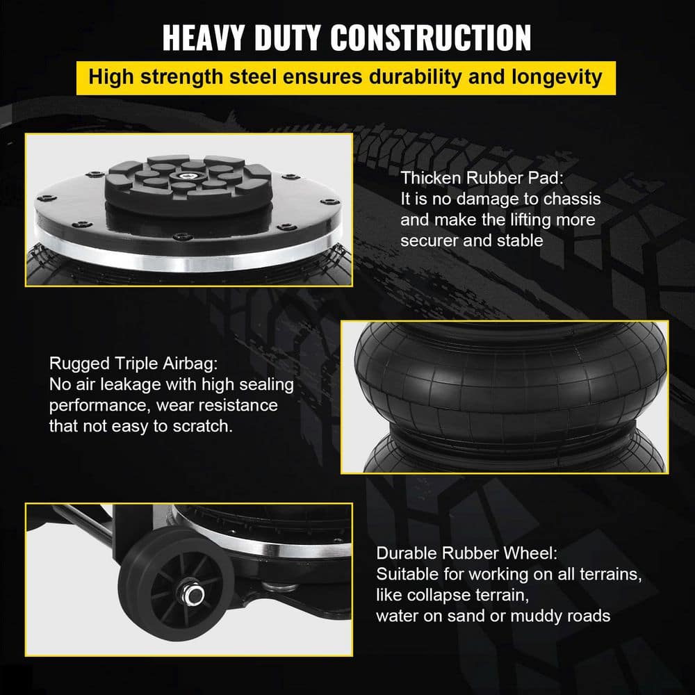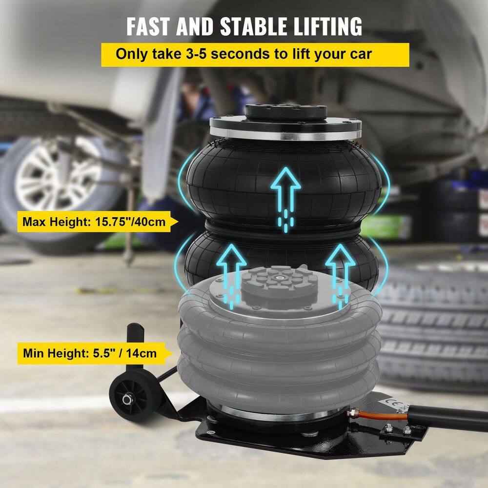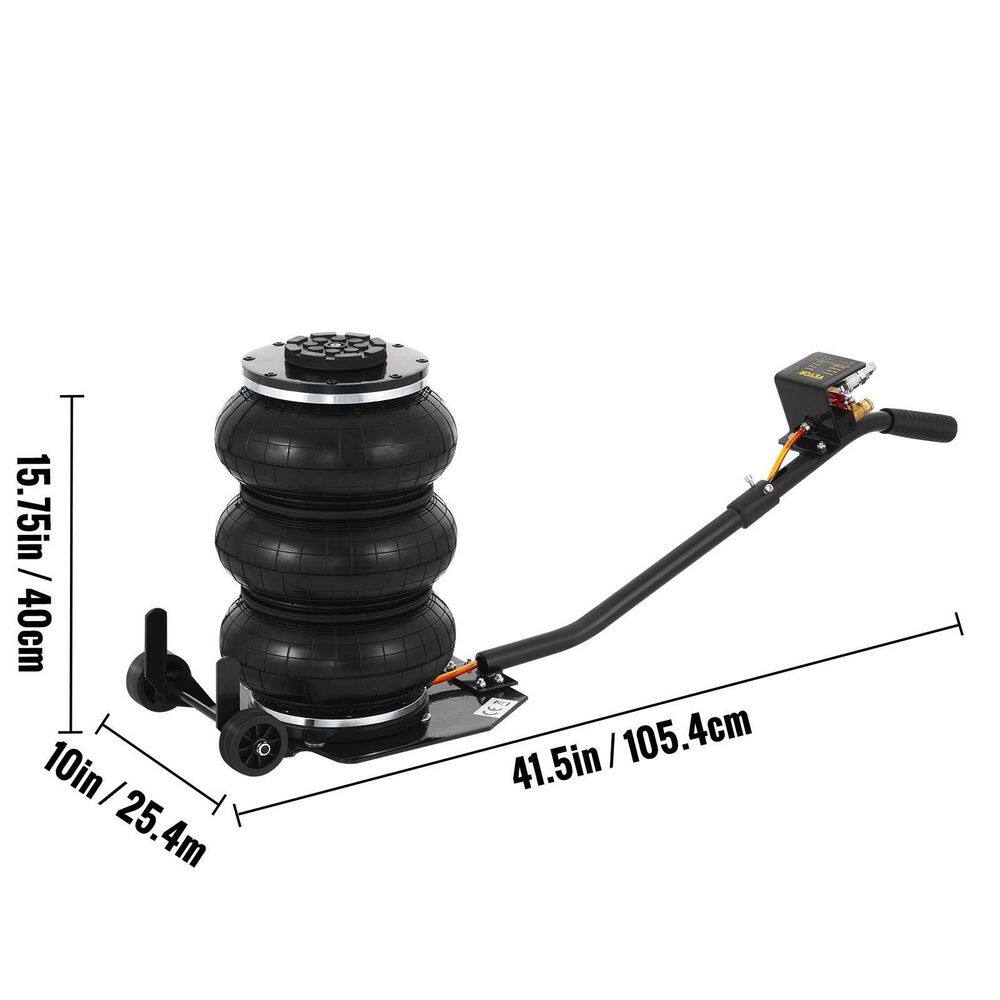 VEVOR QJD3TQNSBK0000001V0 Pneumatic Jack 3-Ton Triple Bag Air Jack 6600 lbs. Quick Lift Heavy-Duty Jacking for Car Lifting Up to 16 in.