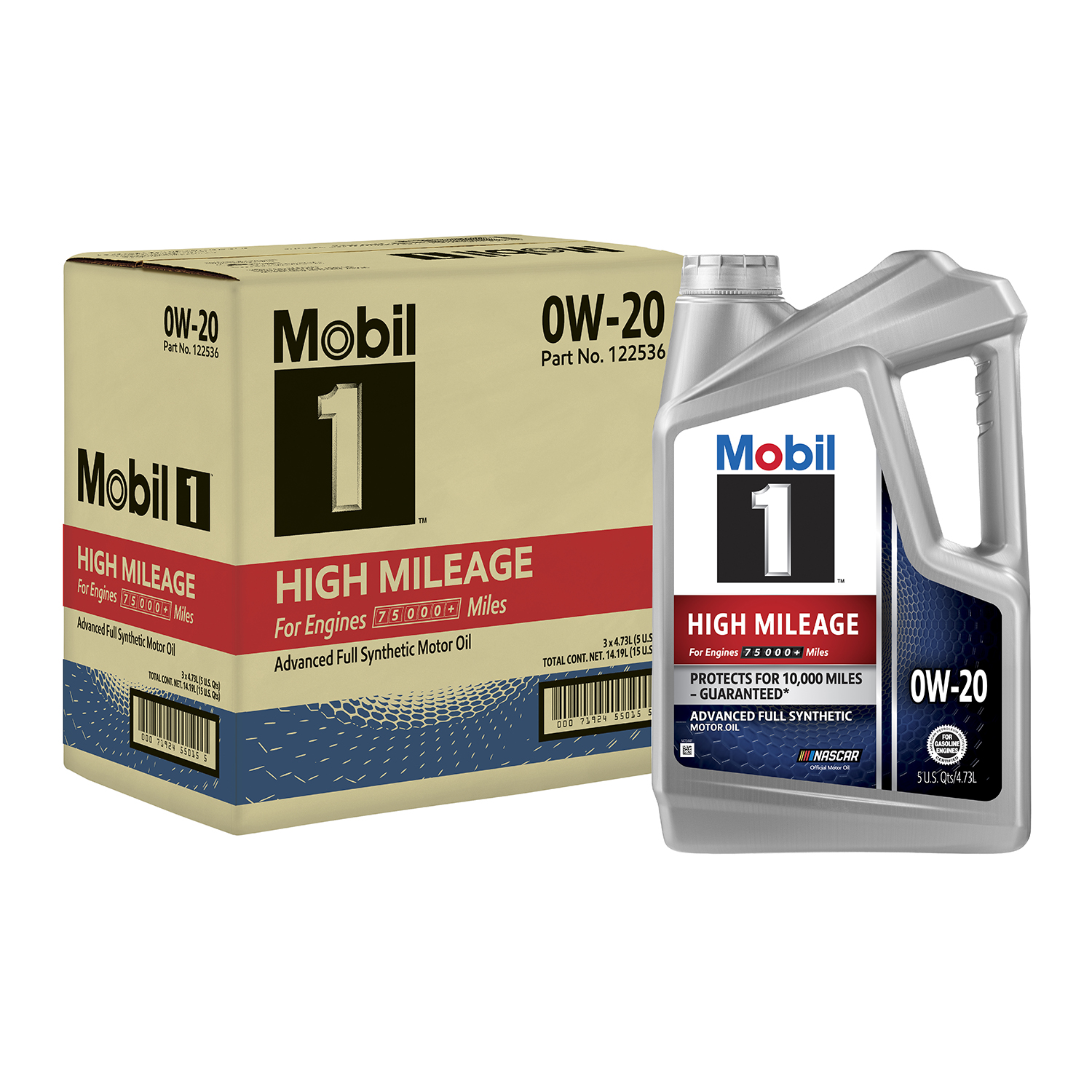 Mobil 1 High Mileage Full Synthetic Motor Oil 5W-30. 12 qt Box
