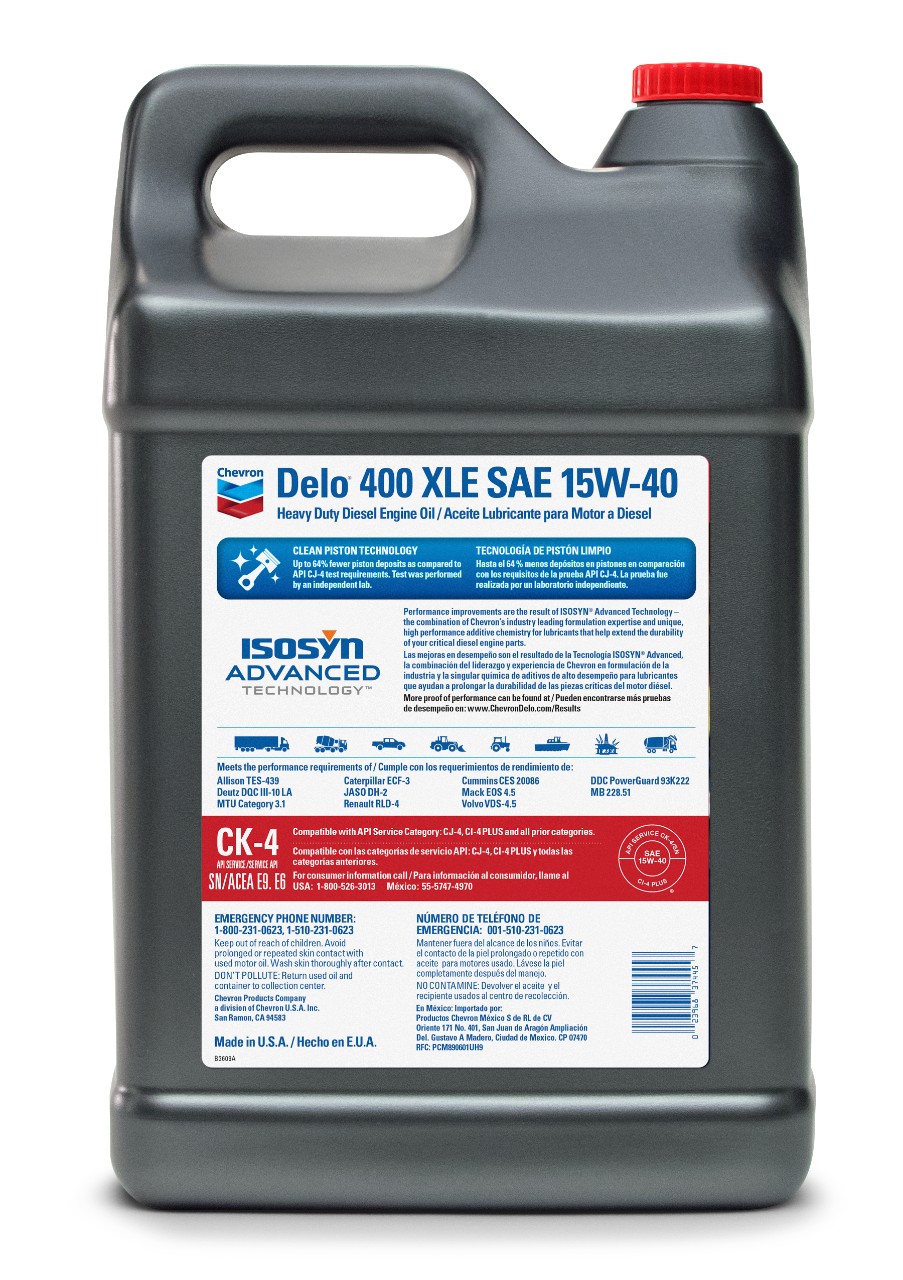 Chevron Delo 400 XLE Synthetic Blend Diesel Motor Oil CK-4. 15W-40. 2.5 Gallon