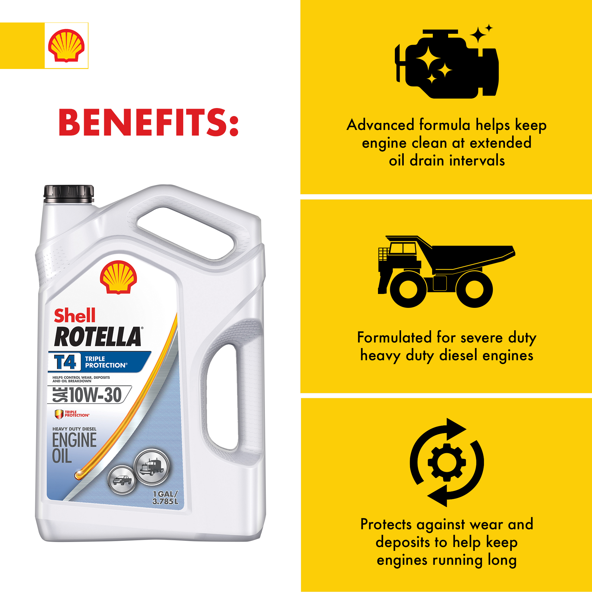 Shell Rotella T4 Triple Protection 10W-30 Diesel Motor Oil. 1 Gallon