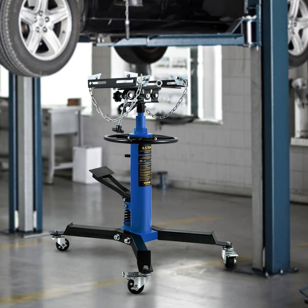 VEVOR MSDGYYCDQJ05T7RKDV0 Transmission Jack 1100 lbs. Hydraulic Telescopic Floor Jack Stand 2-Stage w/ Foot Pedal 360-Degree Wheel for Garage Shop