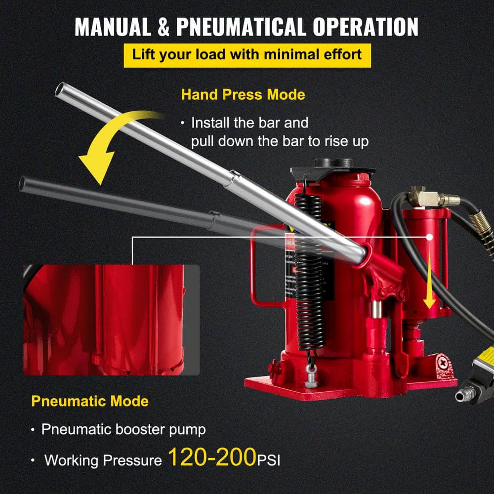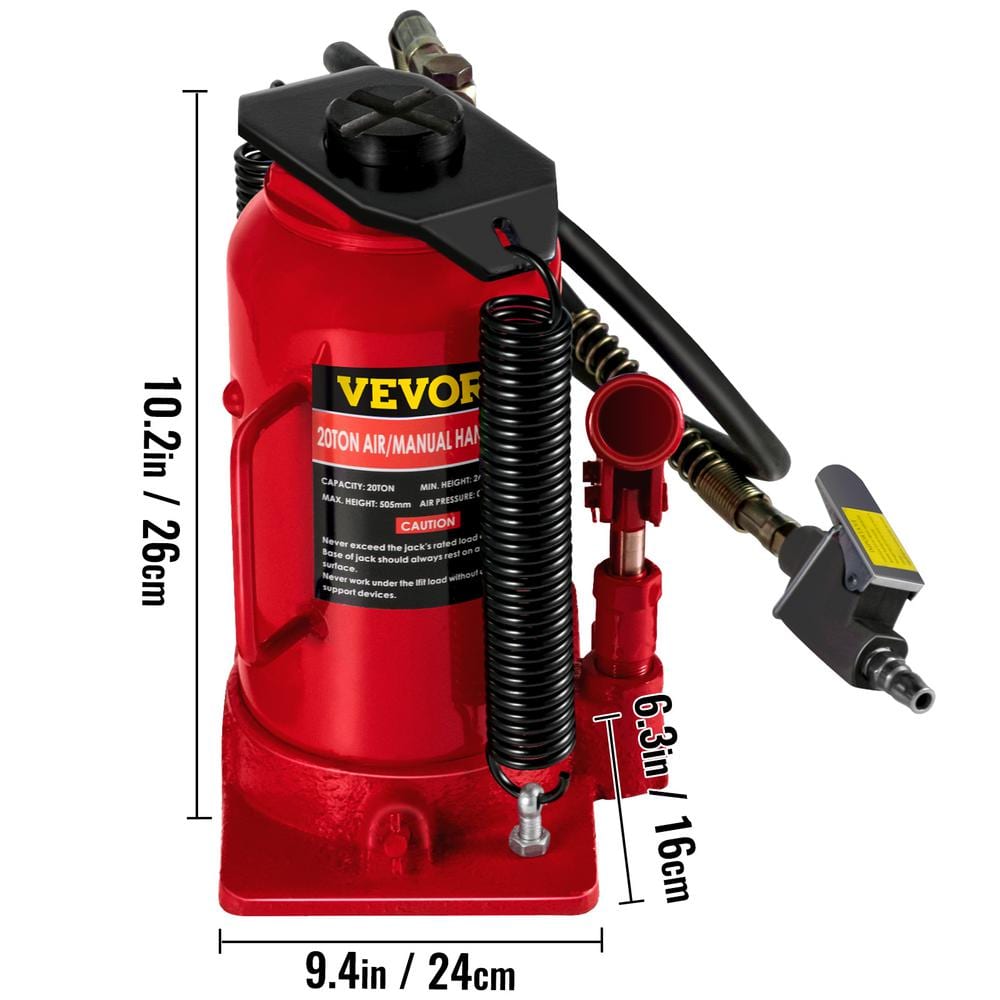 VEVOR QJD20TYYGSRD00001V0 20-Ton Bottle Red Air Hydraulic Bottle Jack Heavy-Duty Auto Truck Repair Lift Air Jack