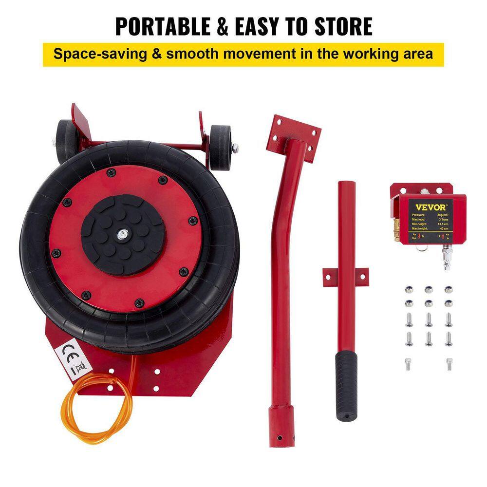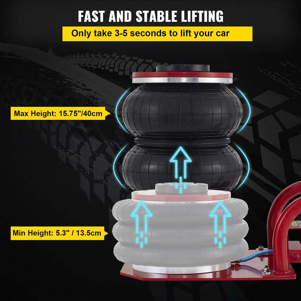 VEVOR QJD3TQNSDBRED0001V0 Triple Bag Air Jack 3-Ton Portable Pneumatic Car Jacks 6600 lbs. Fast Lifting up to 16 in. Heavy-Duty & Quick Lifting