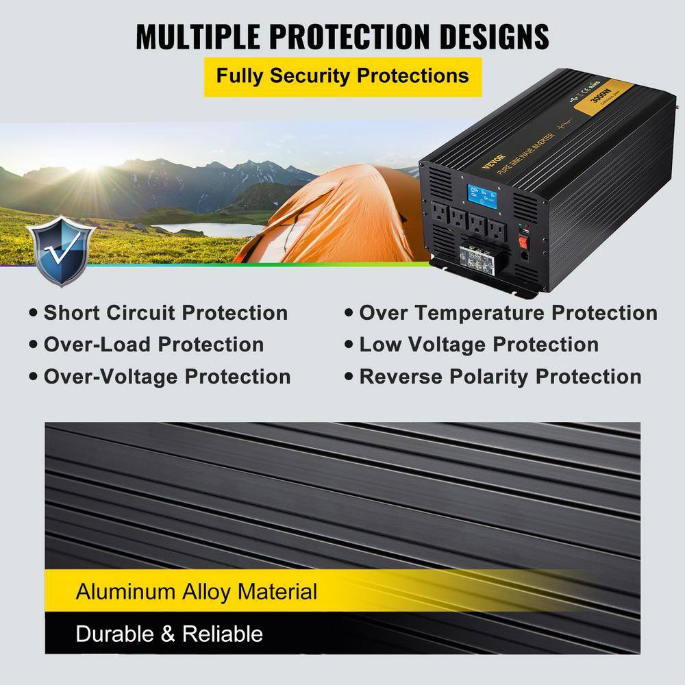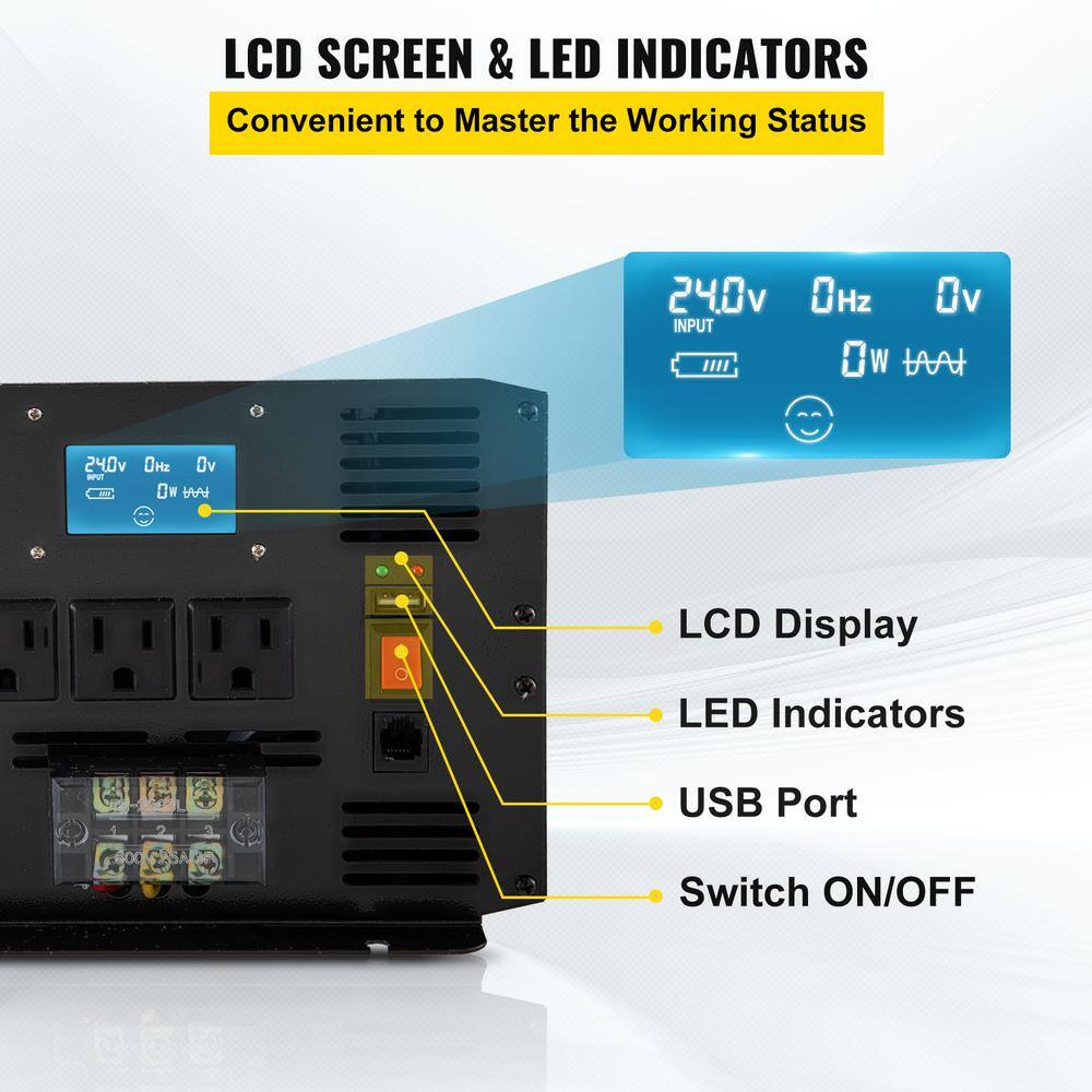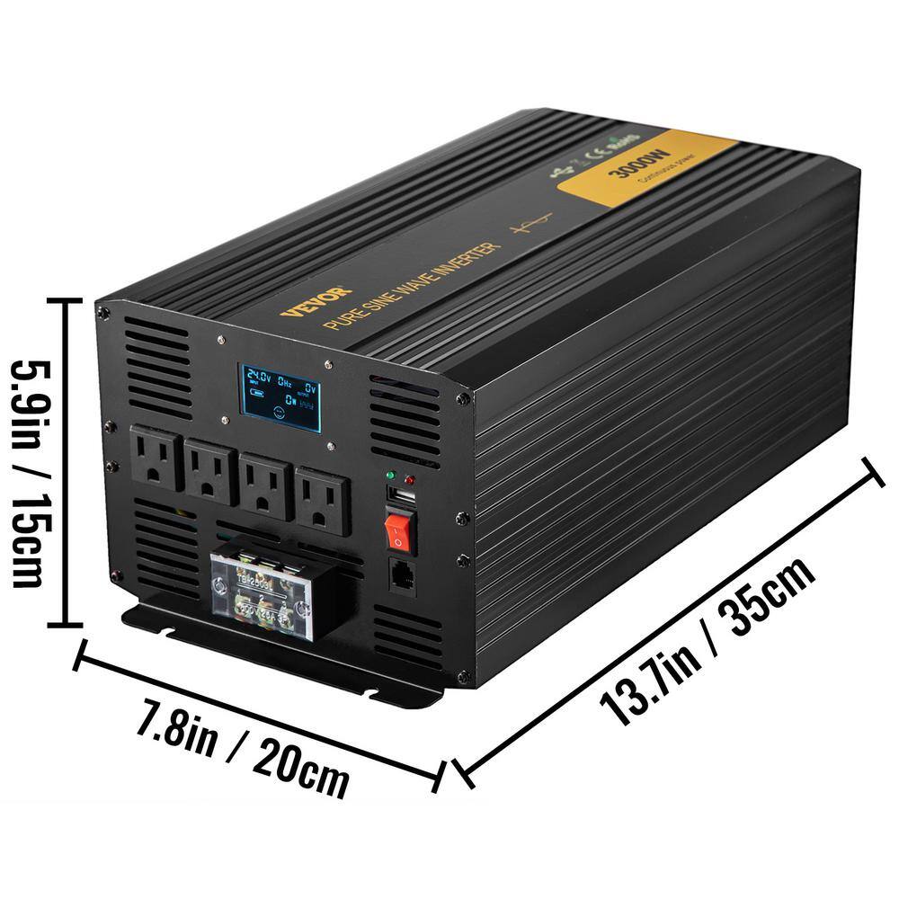 VEVOR CZXNBQDMKWKDD7HPDV9 Pure Sine Wave Power Inverter 3000-Watt Car Inverter DC 24-Volt to AC 120-Volt with USB Port LCD Display Remote Control