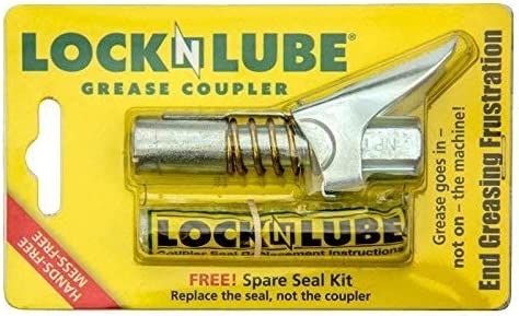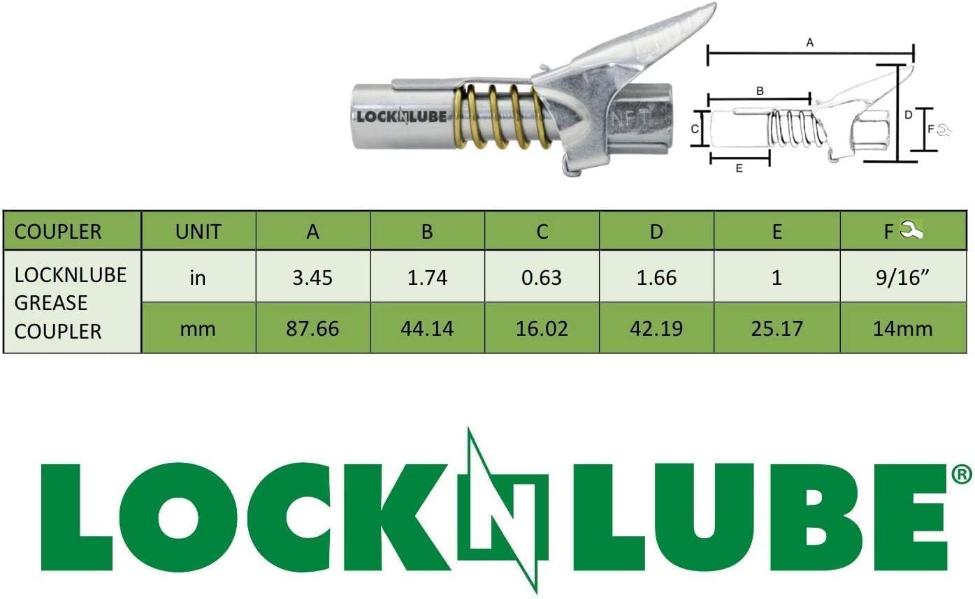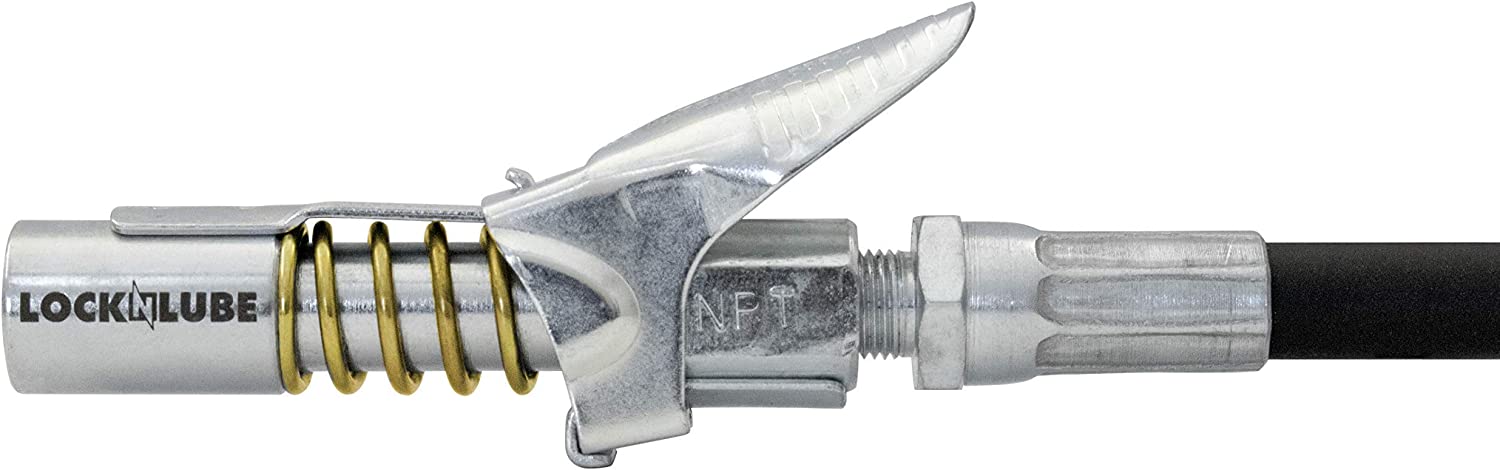 LockNLube GC81011 Grease Gun Coupler locks onto Zerk fittings. Rated 10.000 PSI. Long-lasting rebuildable tool.