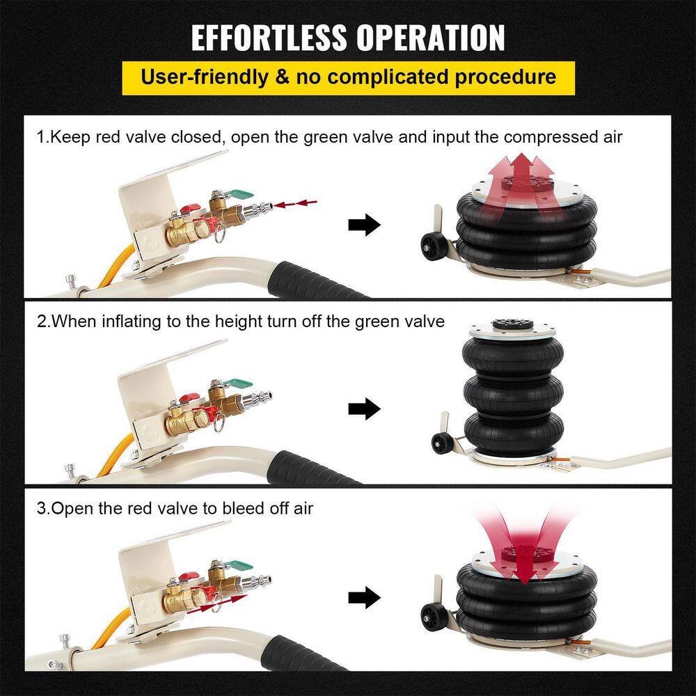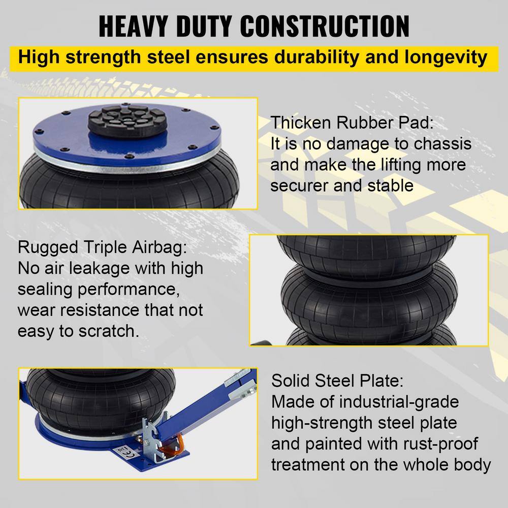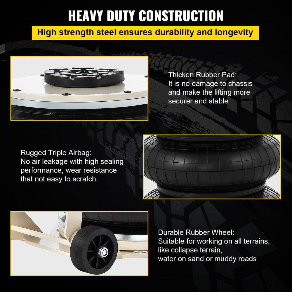 VEVOR QJD5TSBQNS0000001V0 Pneumatic Air Jack 5-Ton/11000 lbs. Triple Bag Air Jack Lifting Height 6.3 in. to 15.75 in. Inflatable Car Jack Lifter
