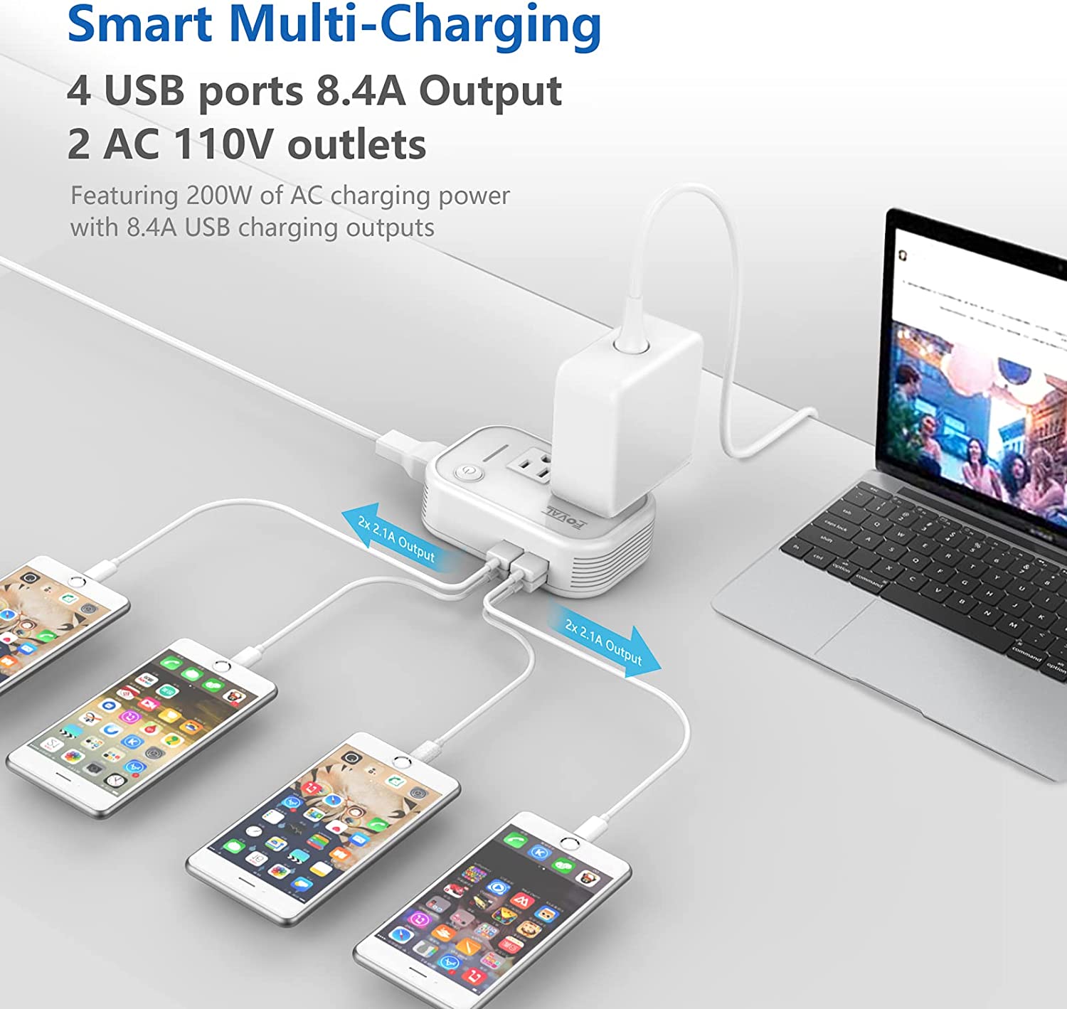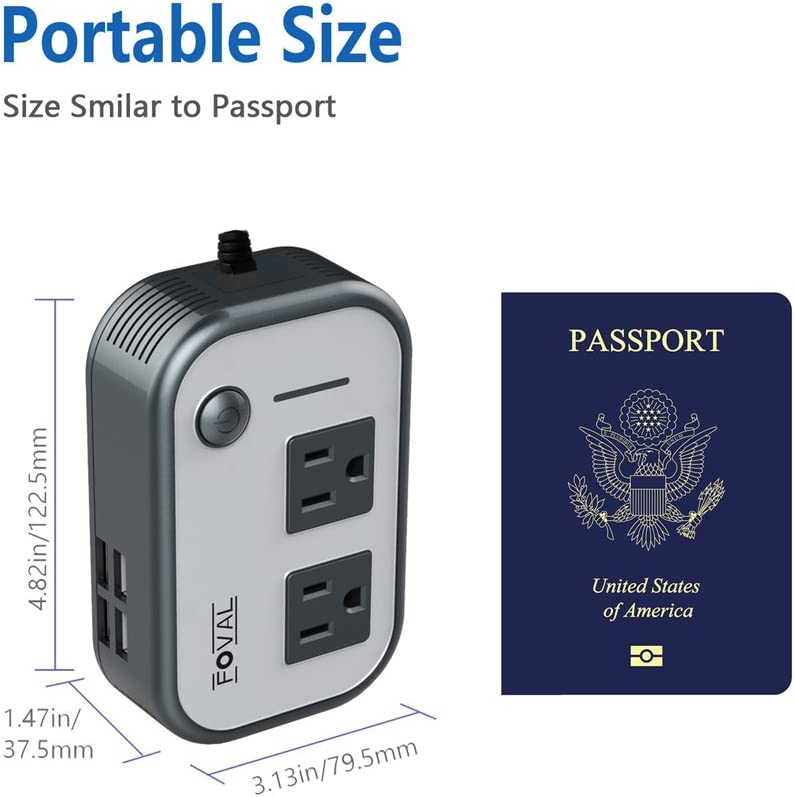 FOVAL 200W Car Power Inverter DC 12V to 110V AC Converter with 4 USB Ports Charger