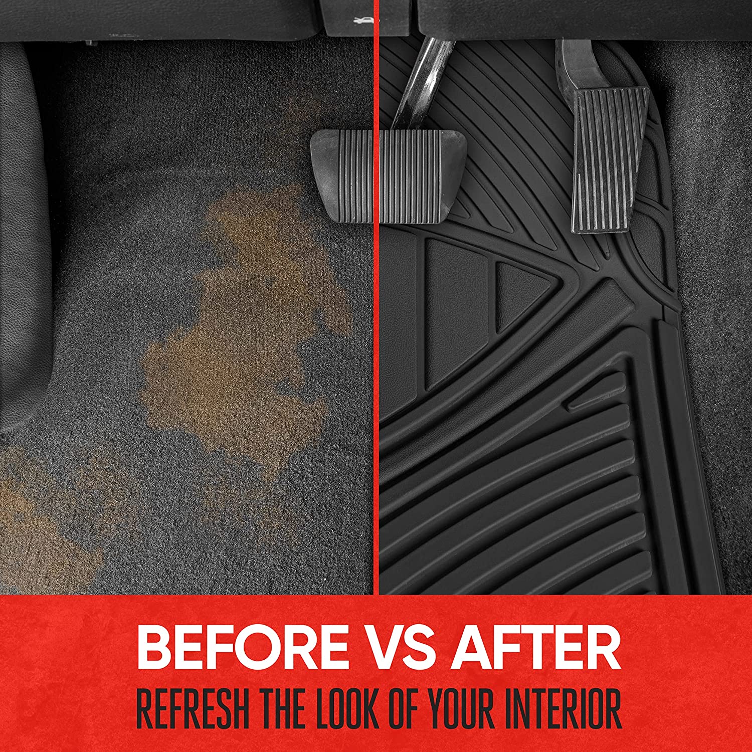 Motor Trend FlexTough Performance All Weather Rubber Car Floor Mats - 3 Piece Floor Mats Automotive Liners for Cars Truck SUV. Heavy-Duty Waterproof (Black)
