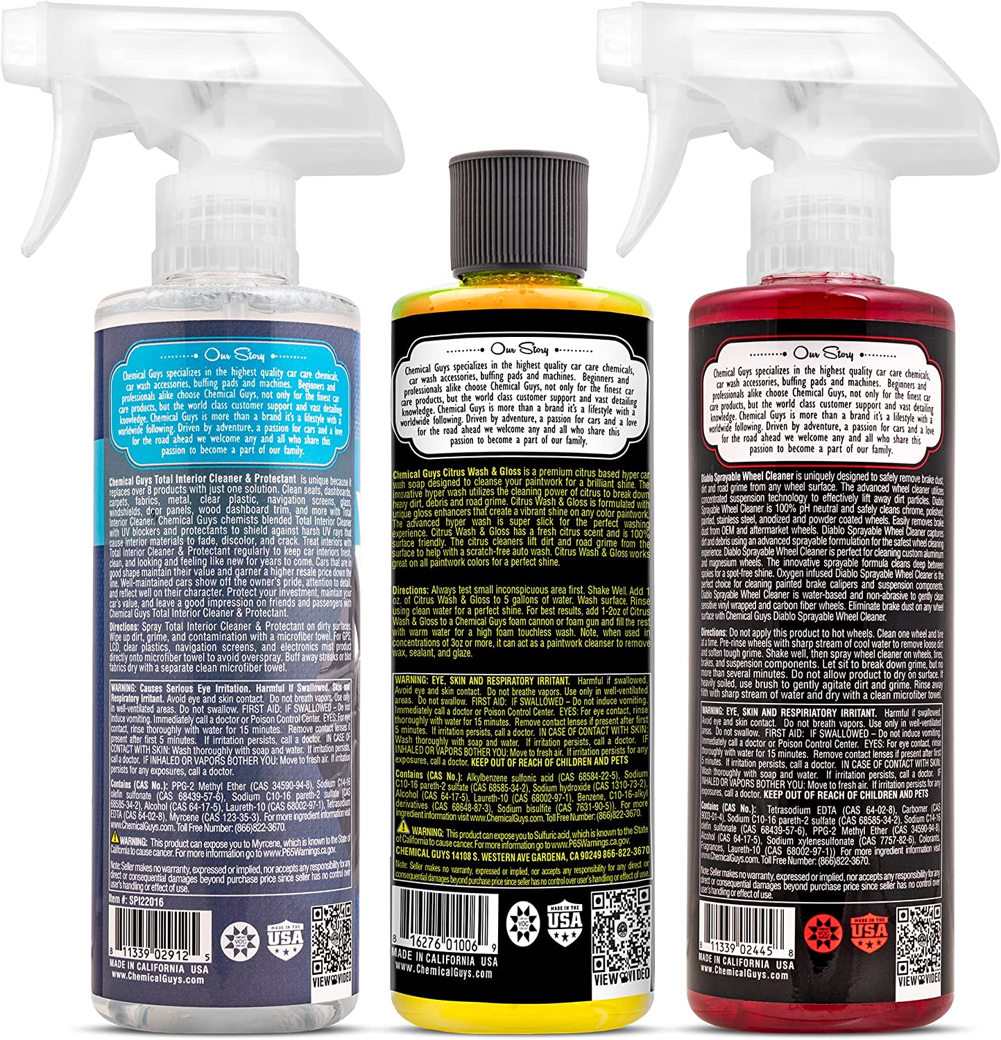 Chemical Guys HOL357 Clean & Shine Car Wash Starter Kit - Safe for Cars. Trucks. Motorcycles. SUVs. Jeeps. RVs & More (7 Items. Including 3 16 oz. Car Detailing Chemicals)