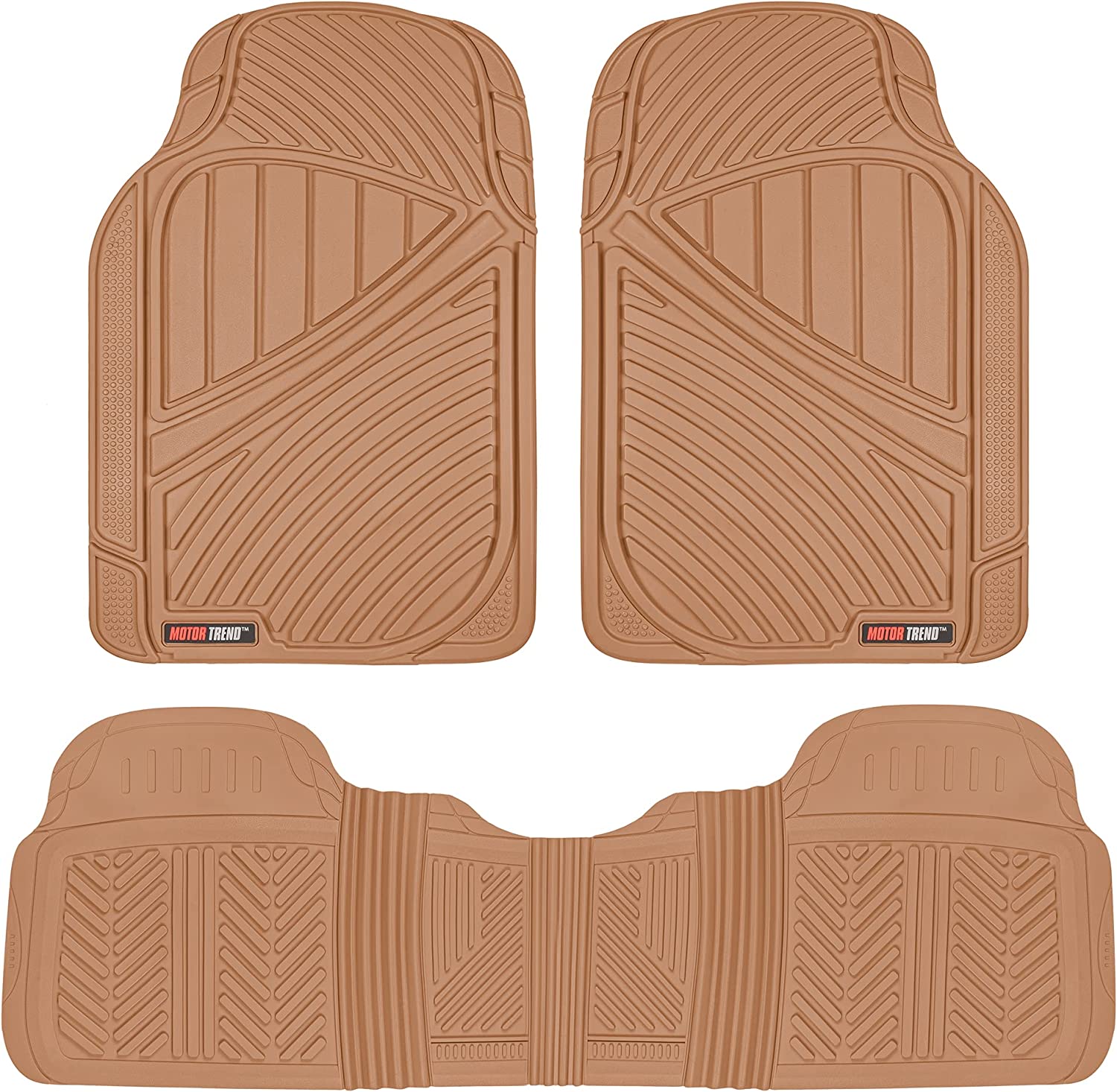 Motor Trend 923-BG Beige FlexTough Contour Liners-Deep Dish Heavy Duty Rubber Floor Mats for Car SUV Truck & Van-All Weather Protection Trim to Fit Most Vehicles(Tan Beige)