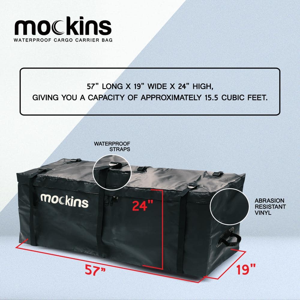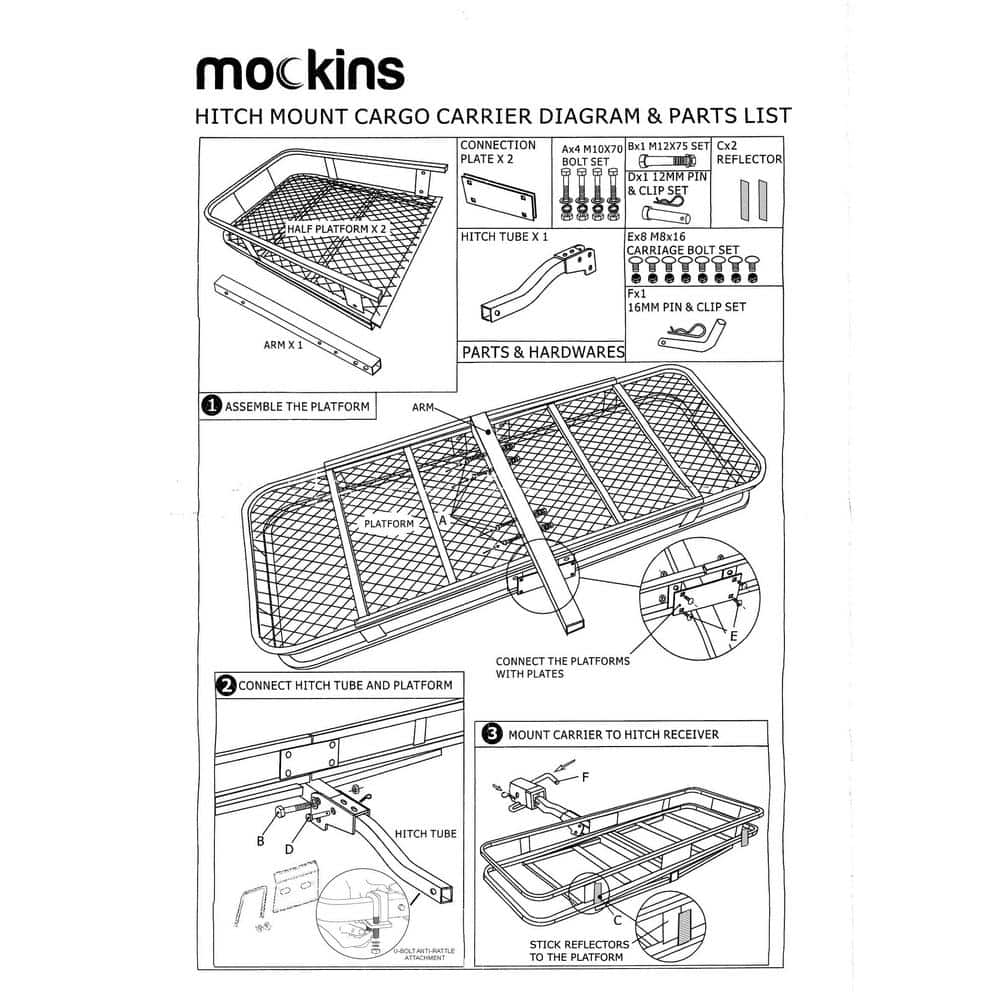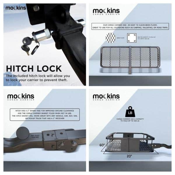 Mockins MACCBNS27 500 lbs. Capacity Hitch Mount Cargo Carrier Set with Folding Shank and 2 in. Raise. Cargo Bag. Net and Ratchet Straps
