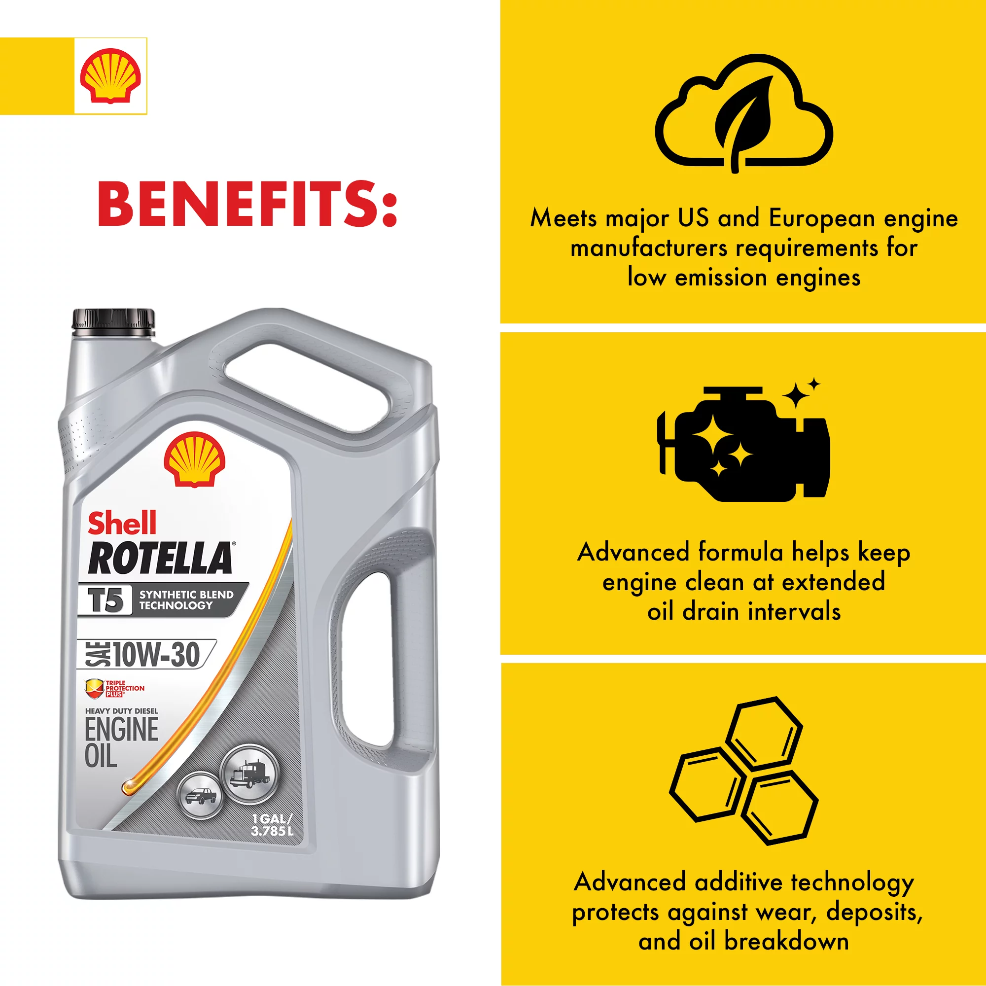 Shell Rotella T5 Ultra Synthetic Blend 10W-30 Diesel Engine Oil. 1 Gallon