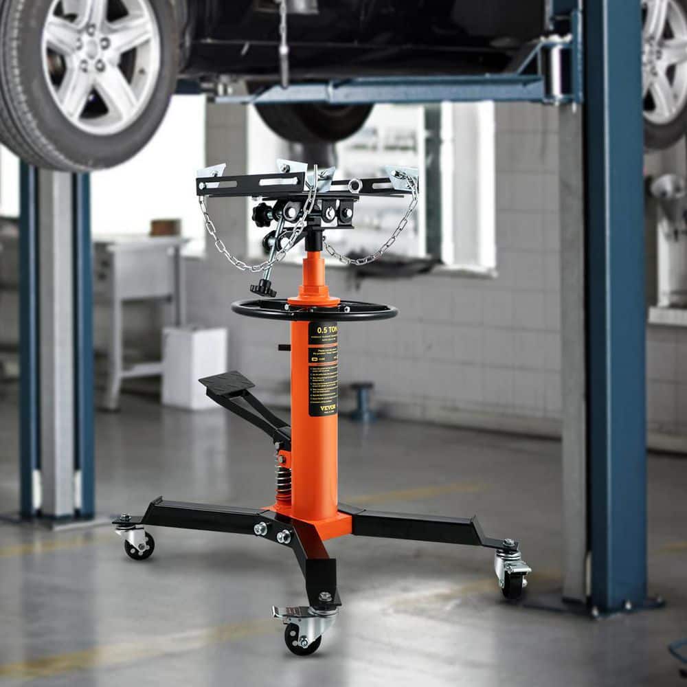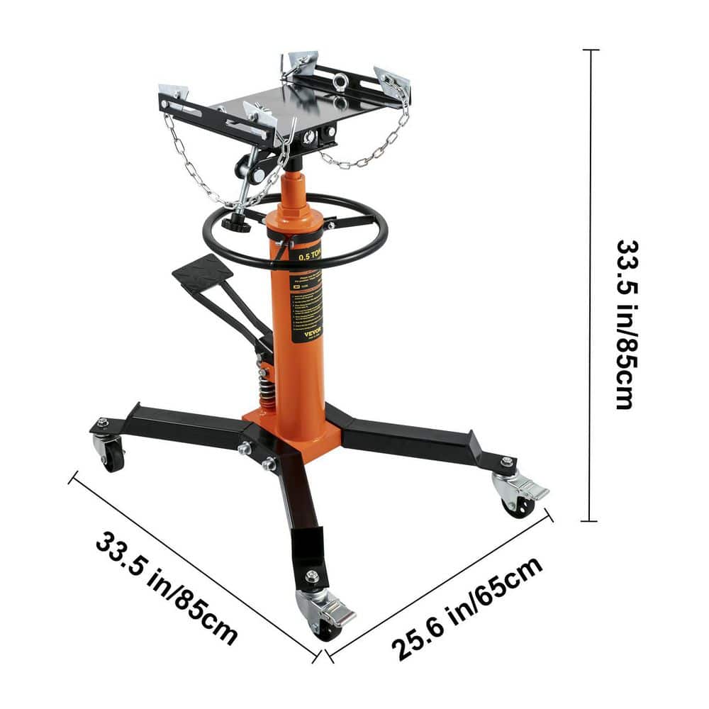 VEVOR MSDGYYCDQJ05TZ25VV0 Transmission Jack 1100 lbs. Hydraulic Telescopic Floor Jack 2-Stage Stand w/ Foot Pedal 360-Degree Wheel for Garage Shop