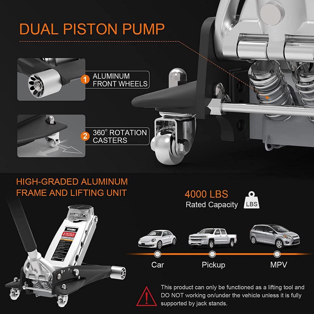 Torin TAM820010L 2-Ton Low-Profile Aluminum Floor Jack with Dual Piston Speedy Lift