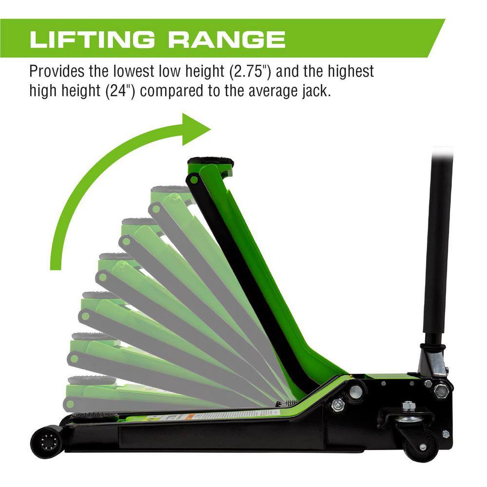 Husky HD00120-GR-TH 3-Ton Low Profile Floor Jack with Quick Lift. Green