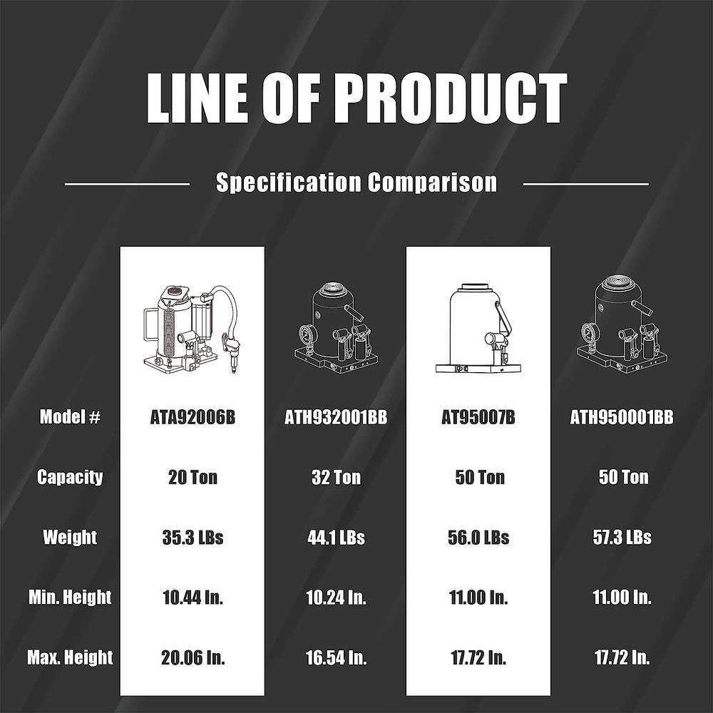 Omega Lift 10120 12-Ton Capacity Black Hydraulic In-Line Bottle Jack