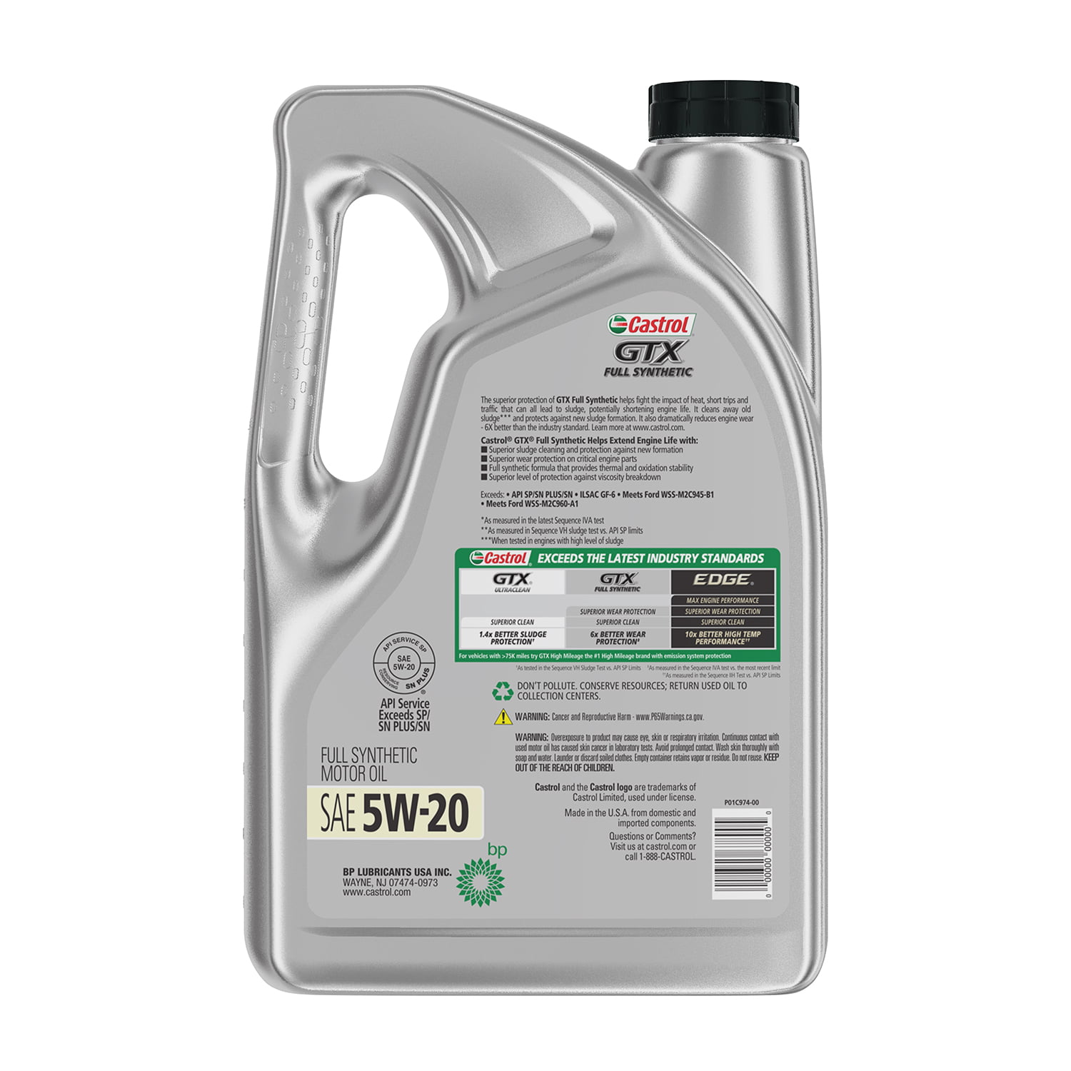Castrol GTX Full Synthetic 5W-20 Motor Oil. 5 Quarts. Case of 3