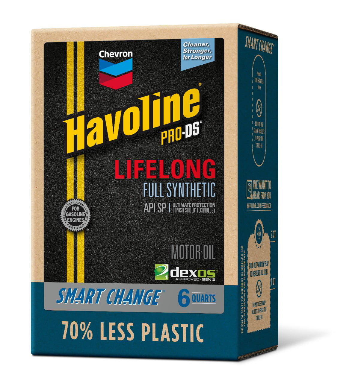 Chevron Havoline Lifelong Synthetic Motor Oil. 10W30. 6 Quart Smart Change Box Case (2-Pack)