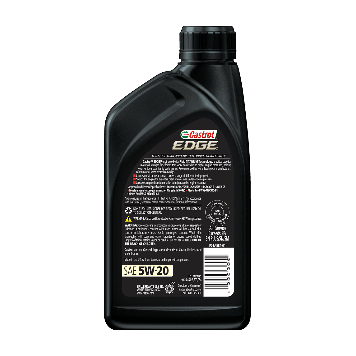 Castrol Edge 5W-20 Advanced Full Synthetic Motor Oil. 1 Quart. Case of 6
