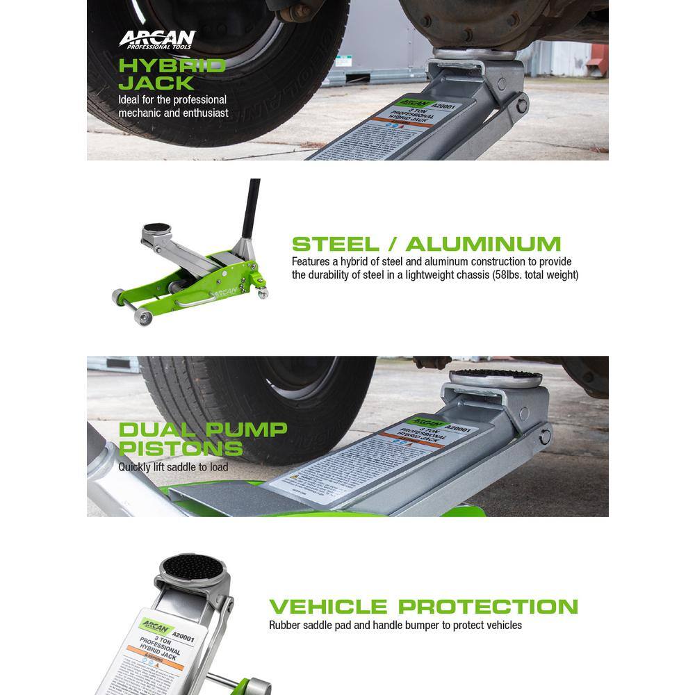 Arcan A20001 3-Ton Hybrid Heavy Duty Aluminum and Steel Low Profile Floor and Car Jack