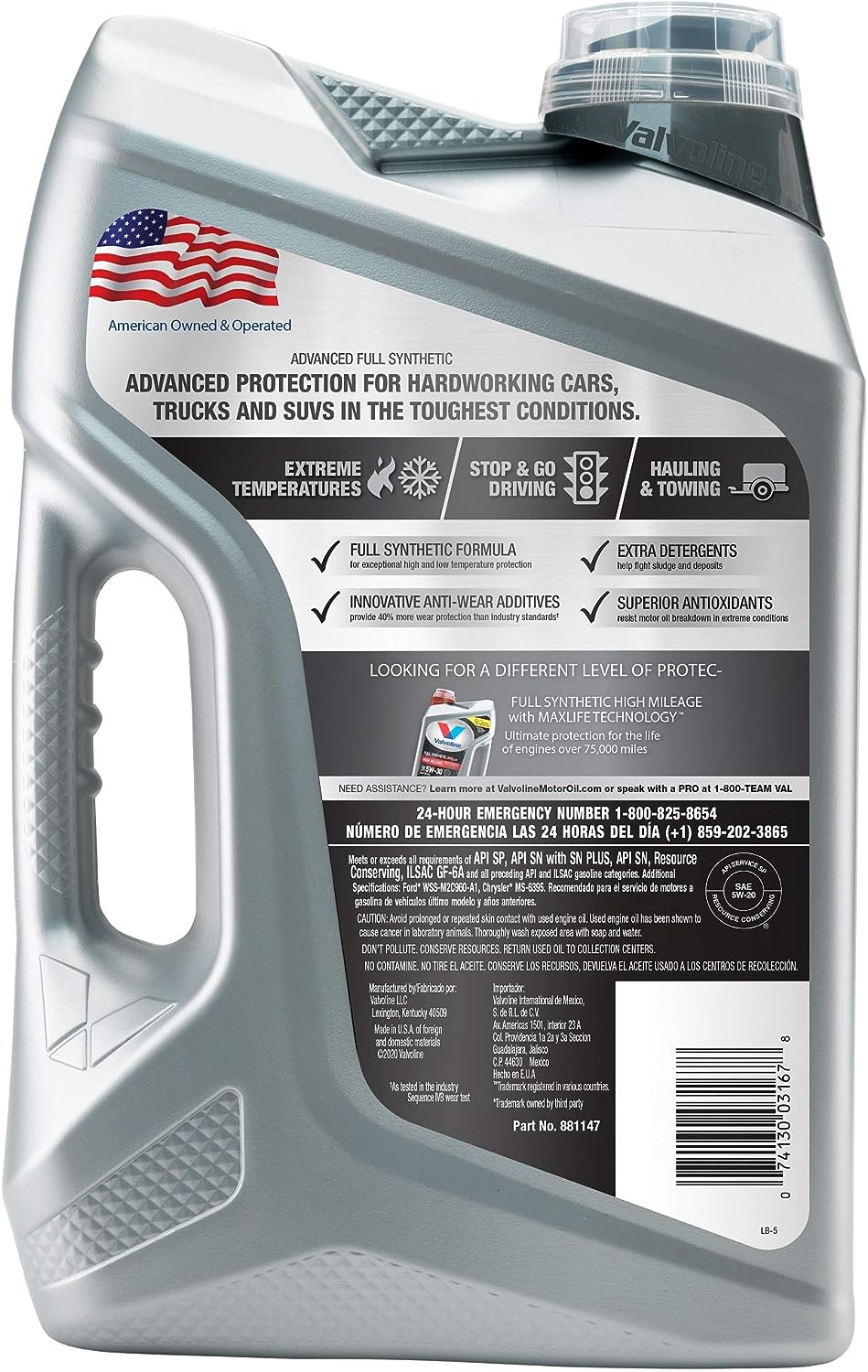Valvoline Advanced Full Synthetic SAE 5W-20 Motor Oil 5 QT. Case of 3