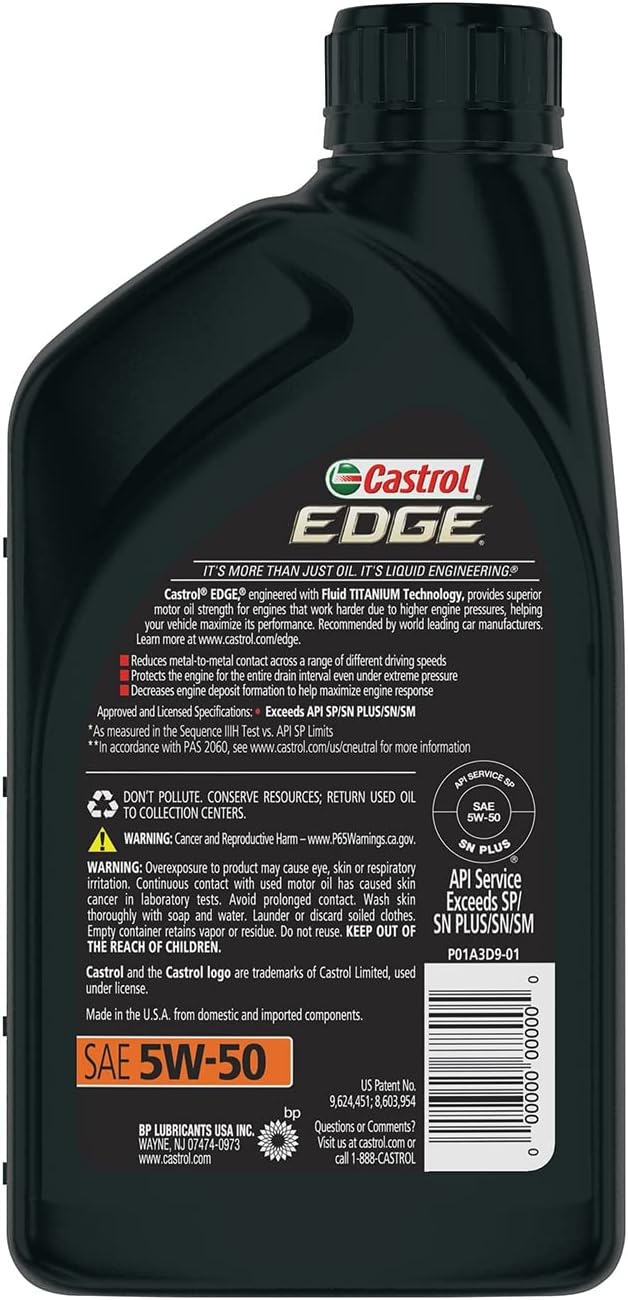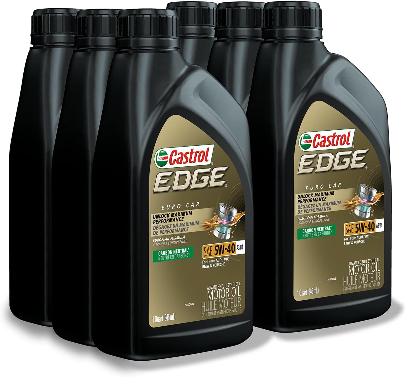 Castrol EDGE Euro 5W-40 A3/B4 Advanced Full Synthetic Motor Oil. 1 Quart. Pack of 6
