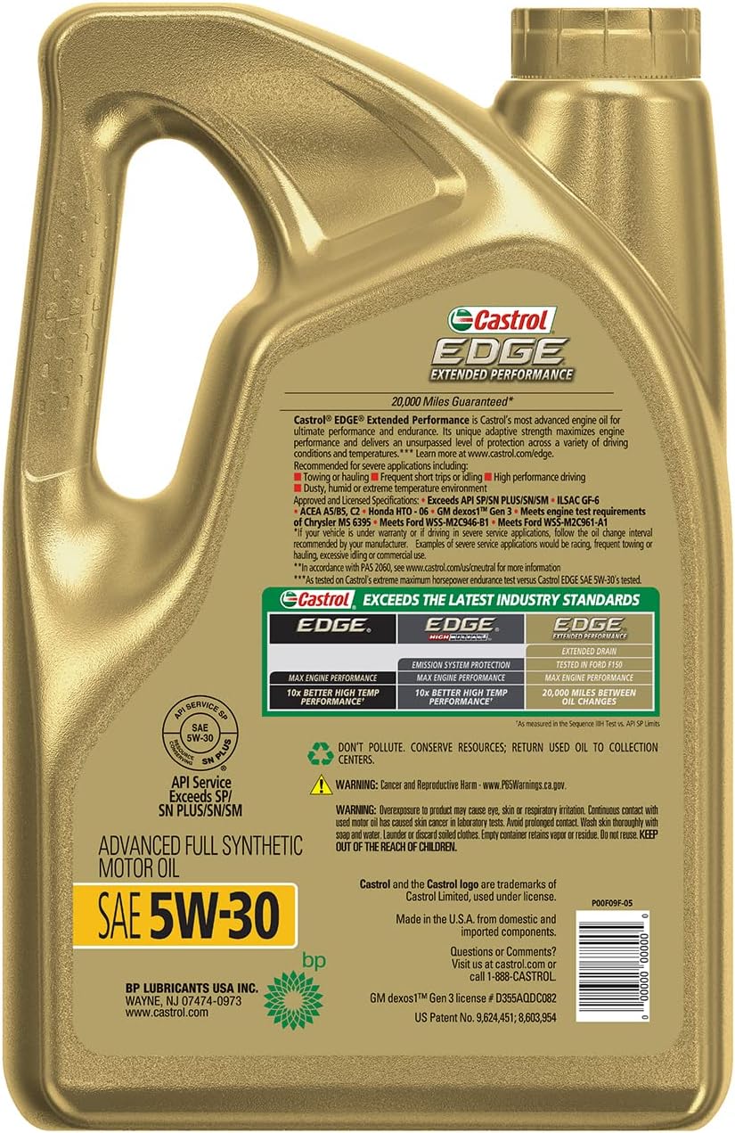 Castrol Edge Extended Performance 5W-30 Advanced Full Synthetic Motor Oil. 5 Quarts. Pack of 3