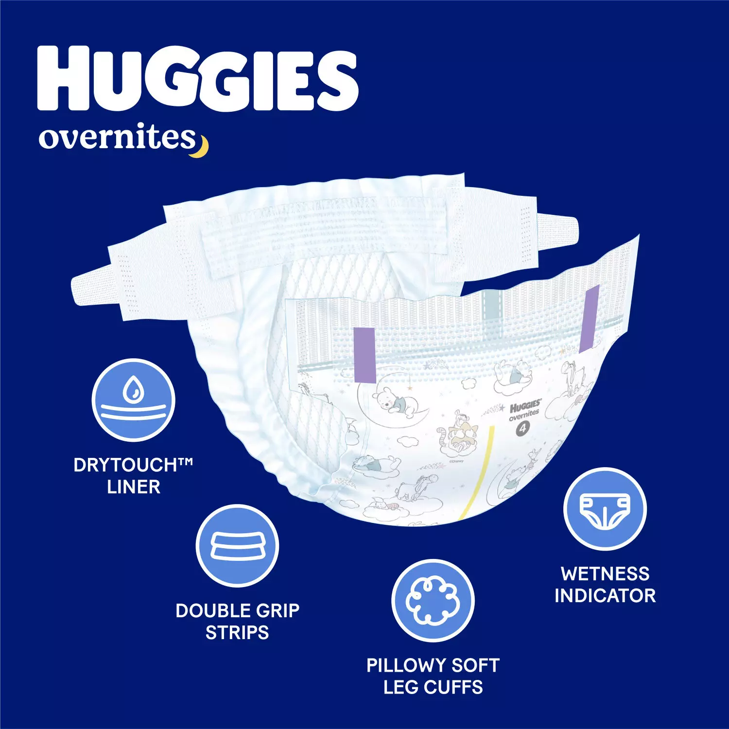 Overnight Diapers Size 4 (22-37 lbs). 116 Ct. Huggies Overnites Nighttime Baby Diapers