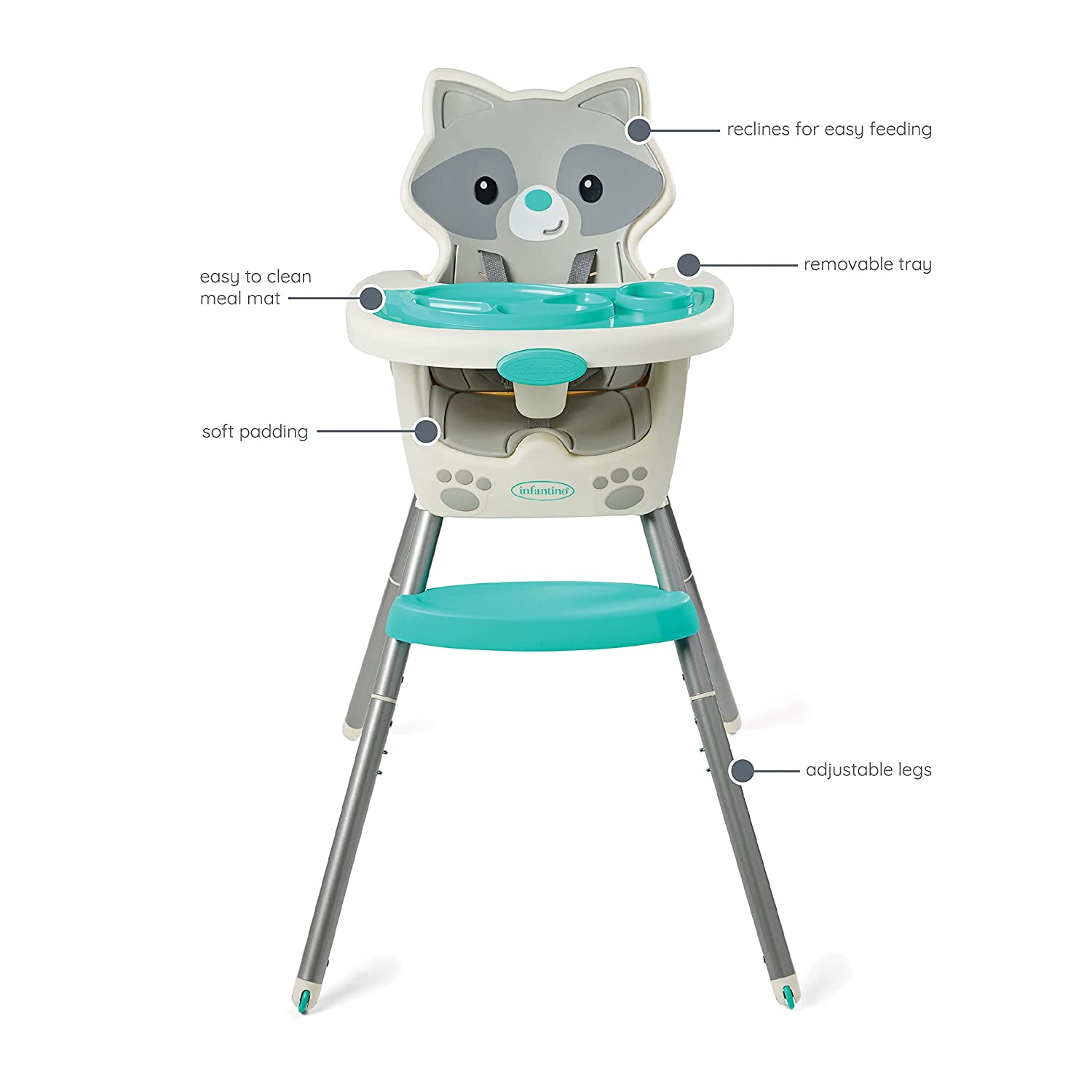 Infantino Grow-with-Me 4-in-1 Convertible High Chair. Raccoon-Theme. Space-Saving Design. Booster and Toddler Chair. for Infants & Toddlers 3M-36M