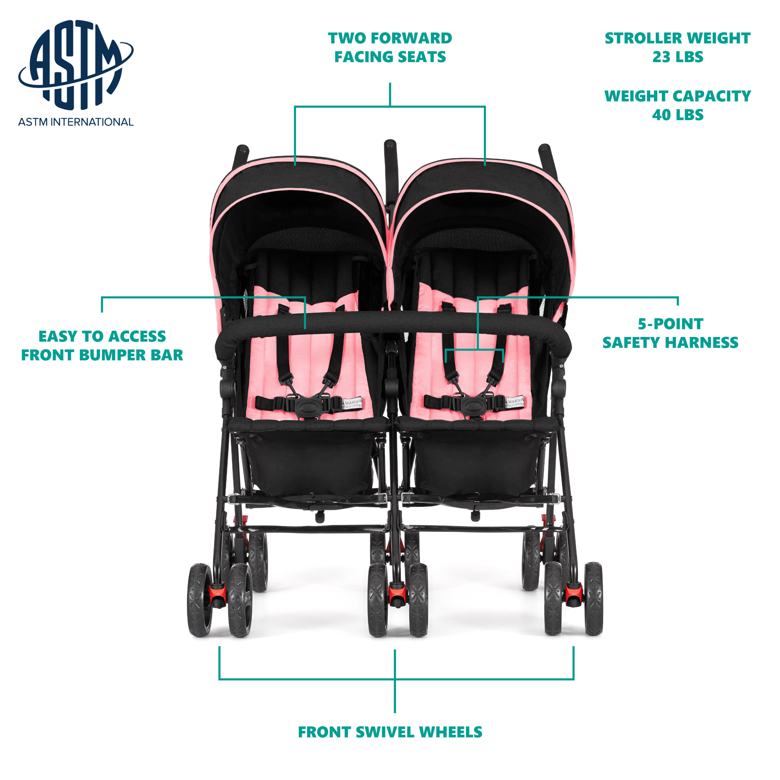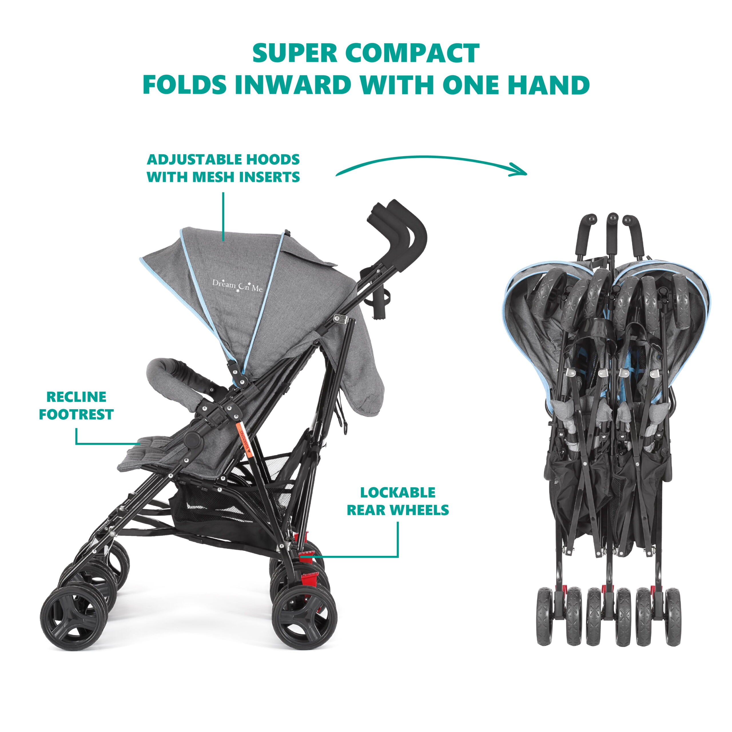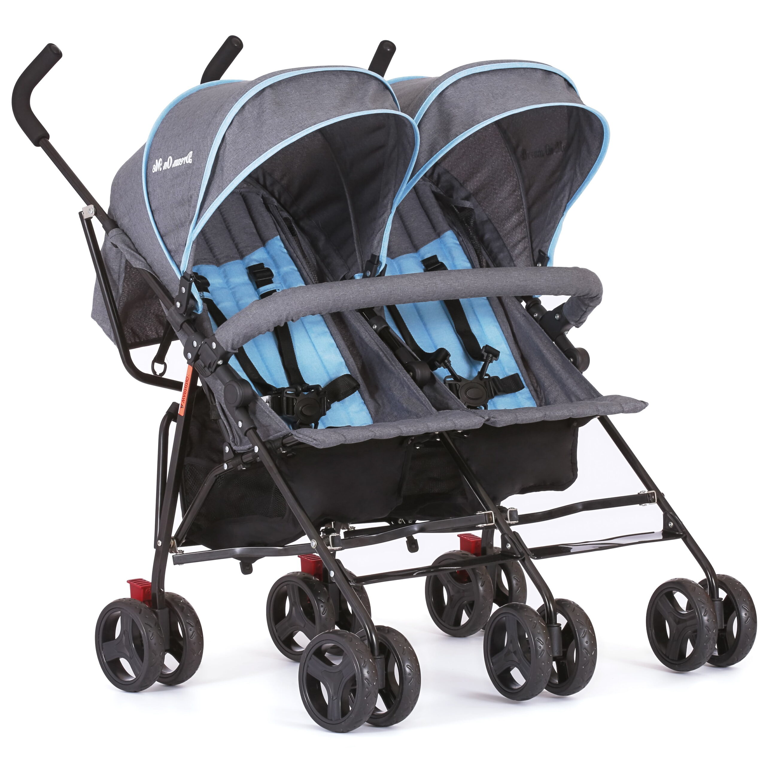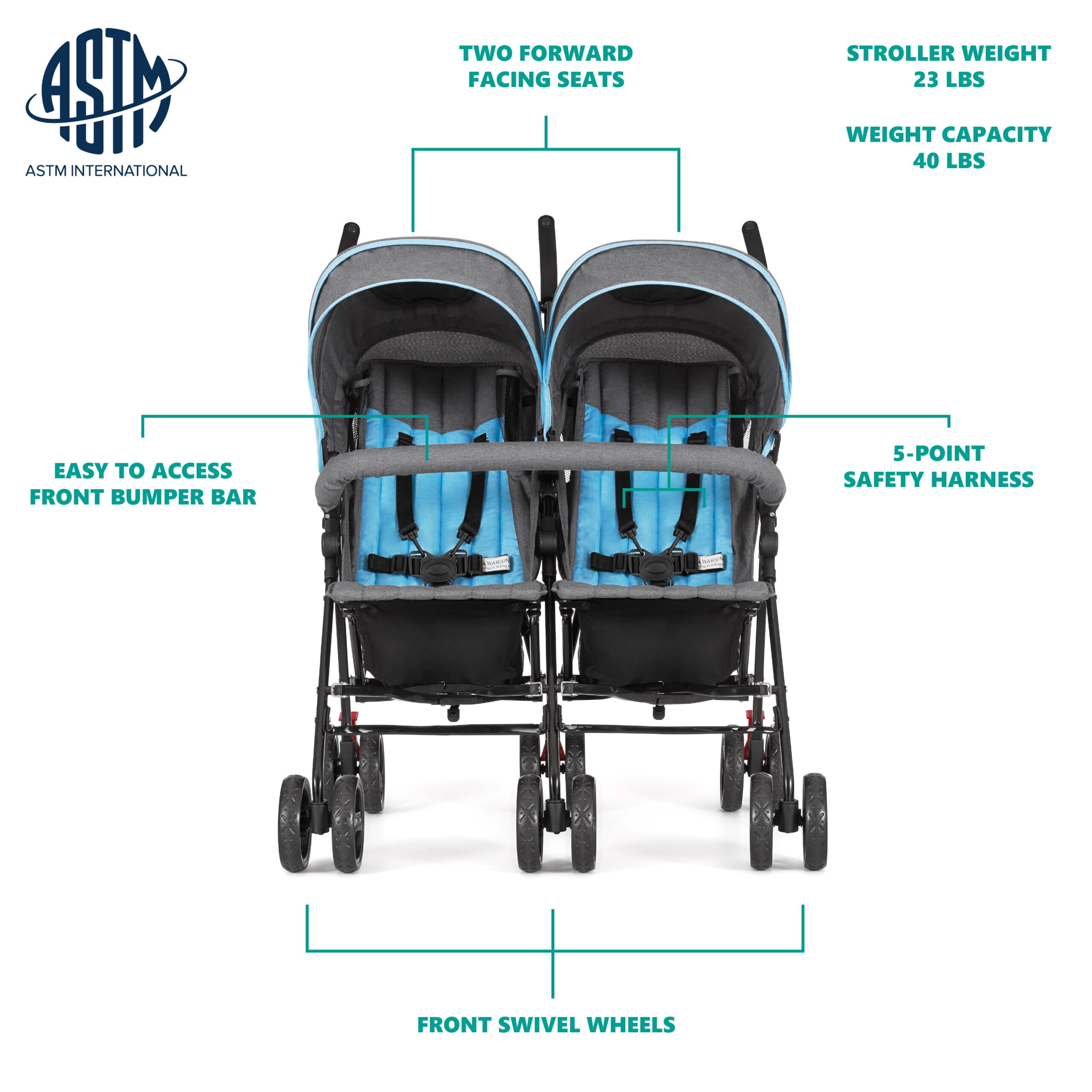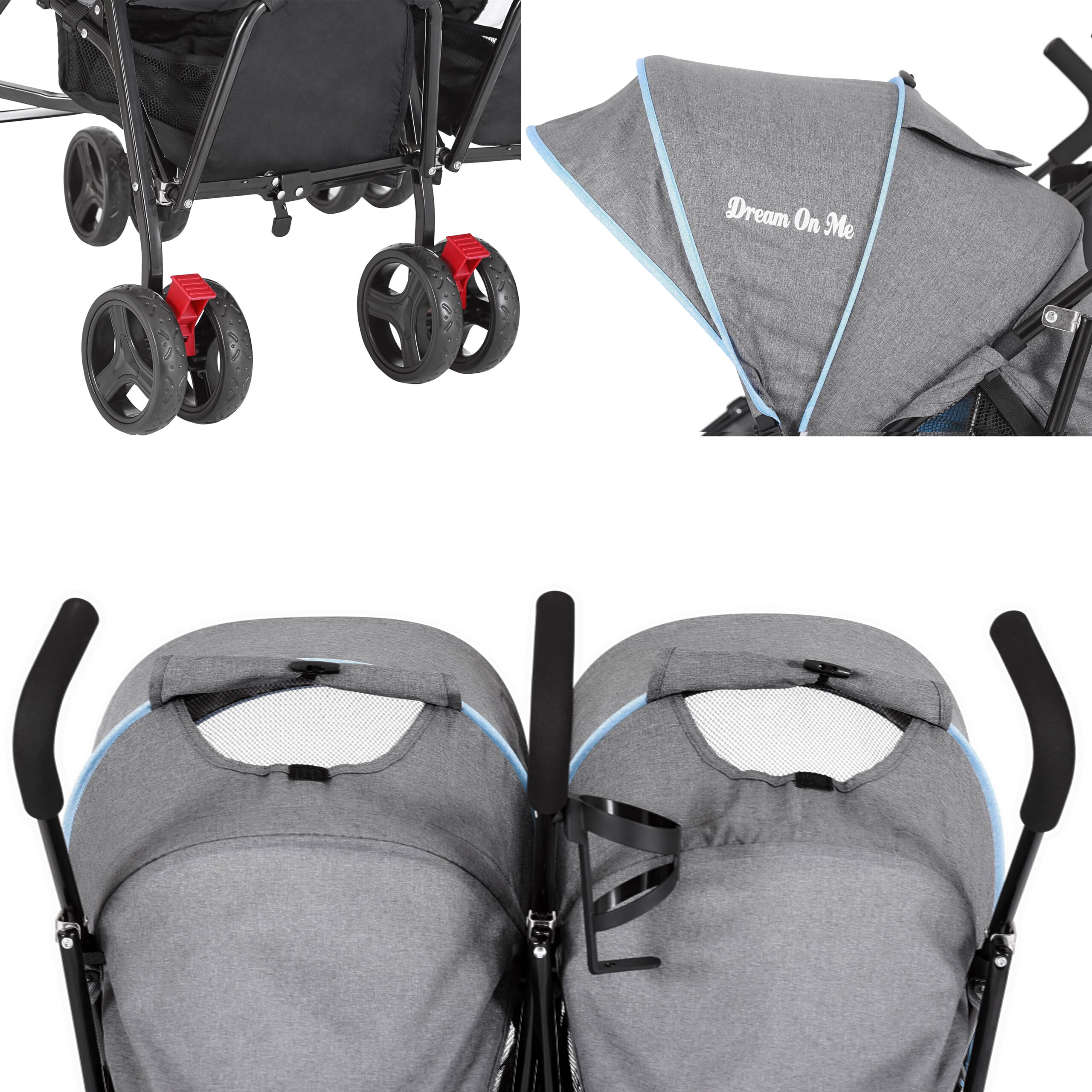 Dream On Me Volgo Twin Umbrella Stroller. Blue and Dark Grey