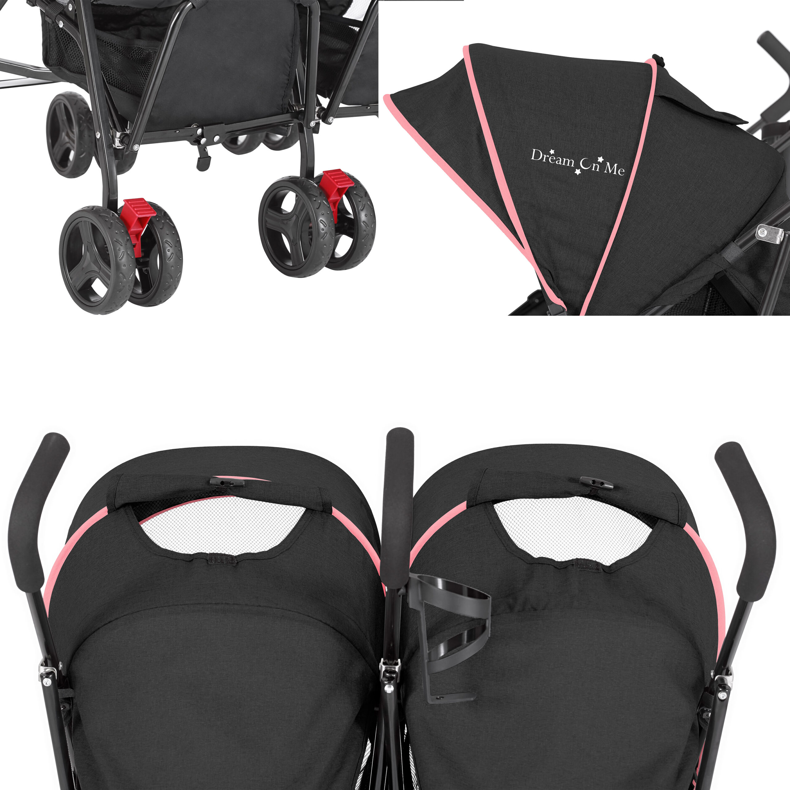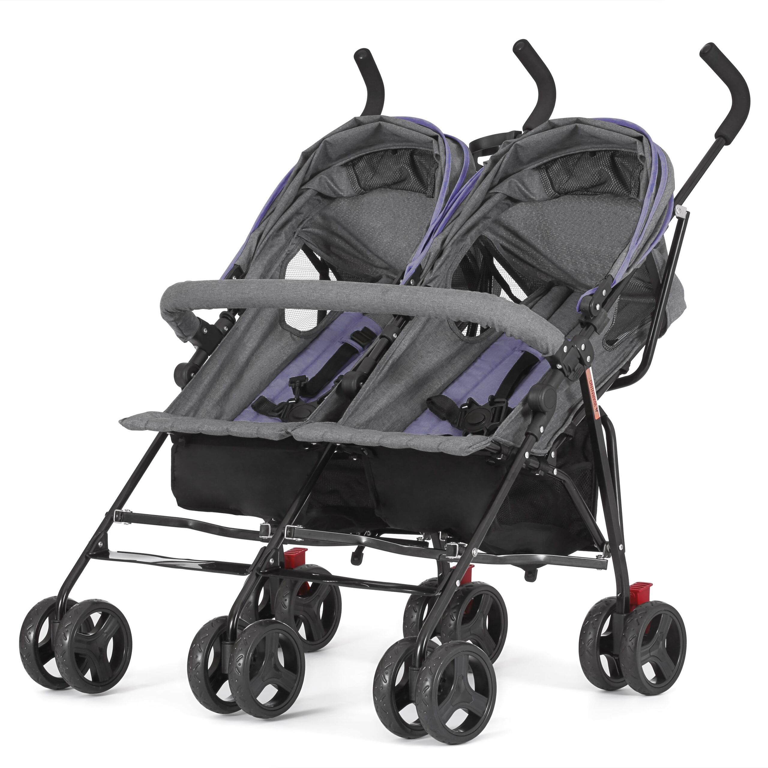 Dream On Me Volgo Twin Umbrella Stroller. Purple and Dark Grey