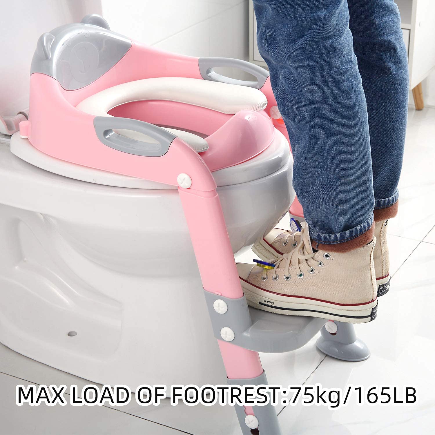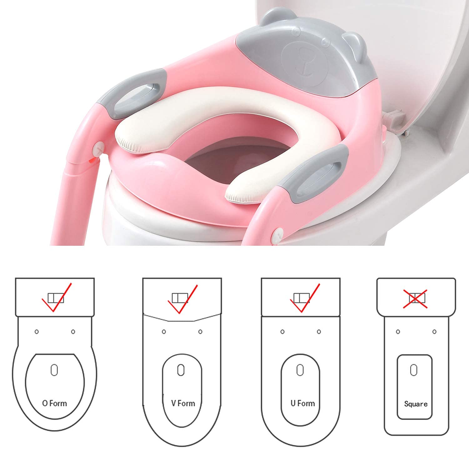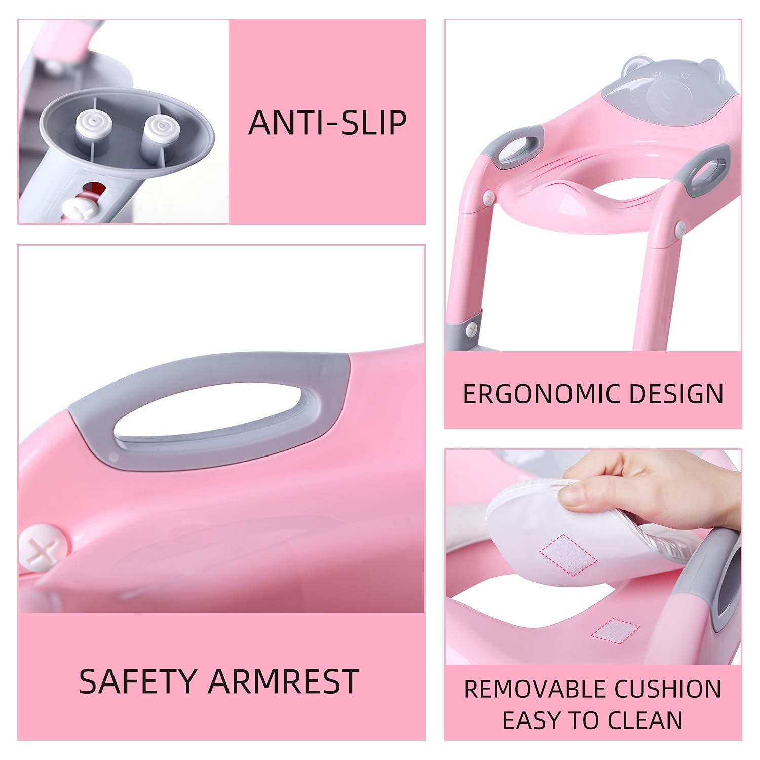 Fedicelly Potty Training Seat Ladder Girls. Toddlers Potty Chair Potty Seat (Gray/Pink)