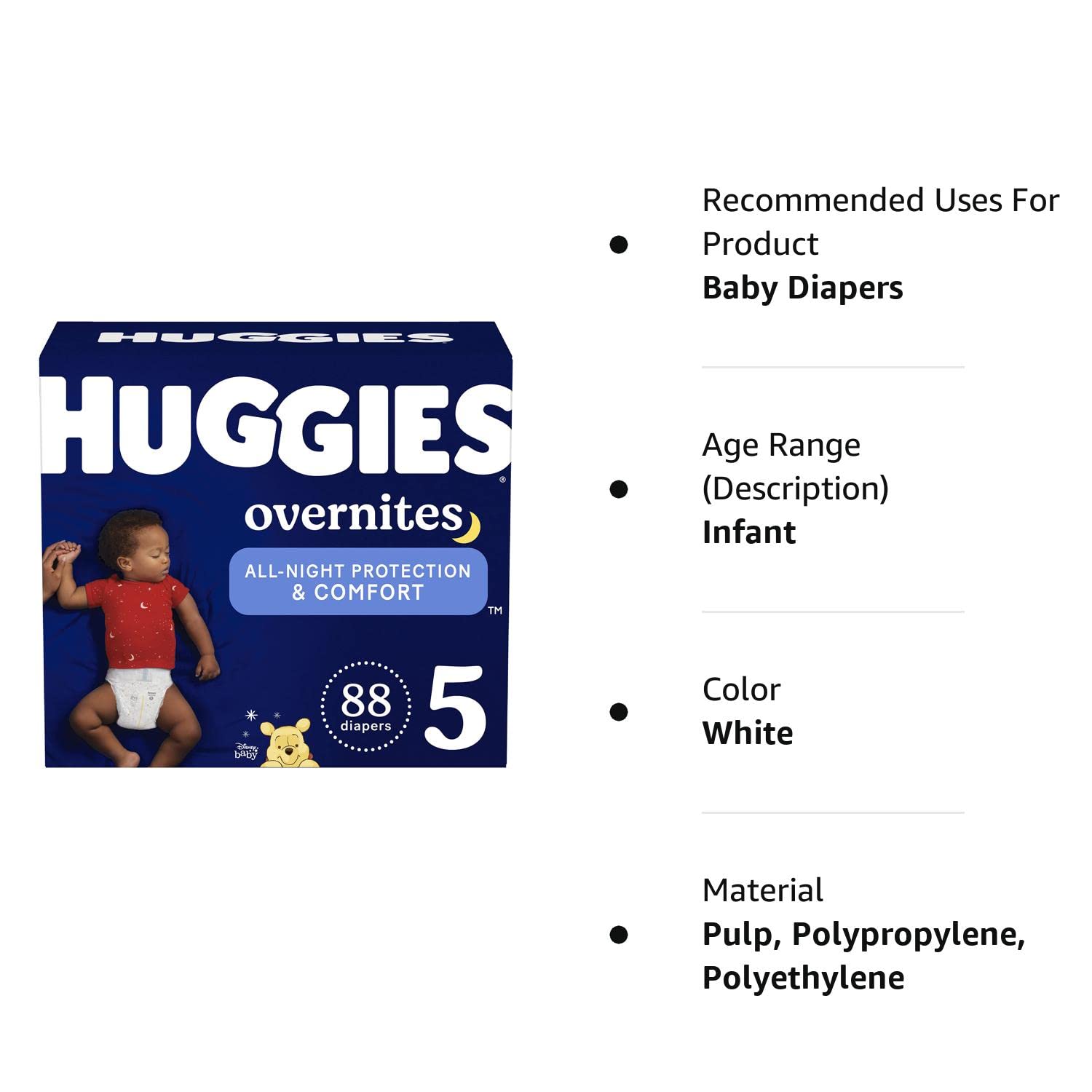 Huggies Overnites Nighttime Baby Diapers. Size 5 (27+ lbs). 88 Ct