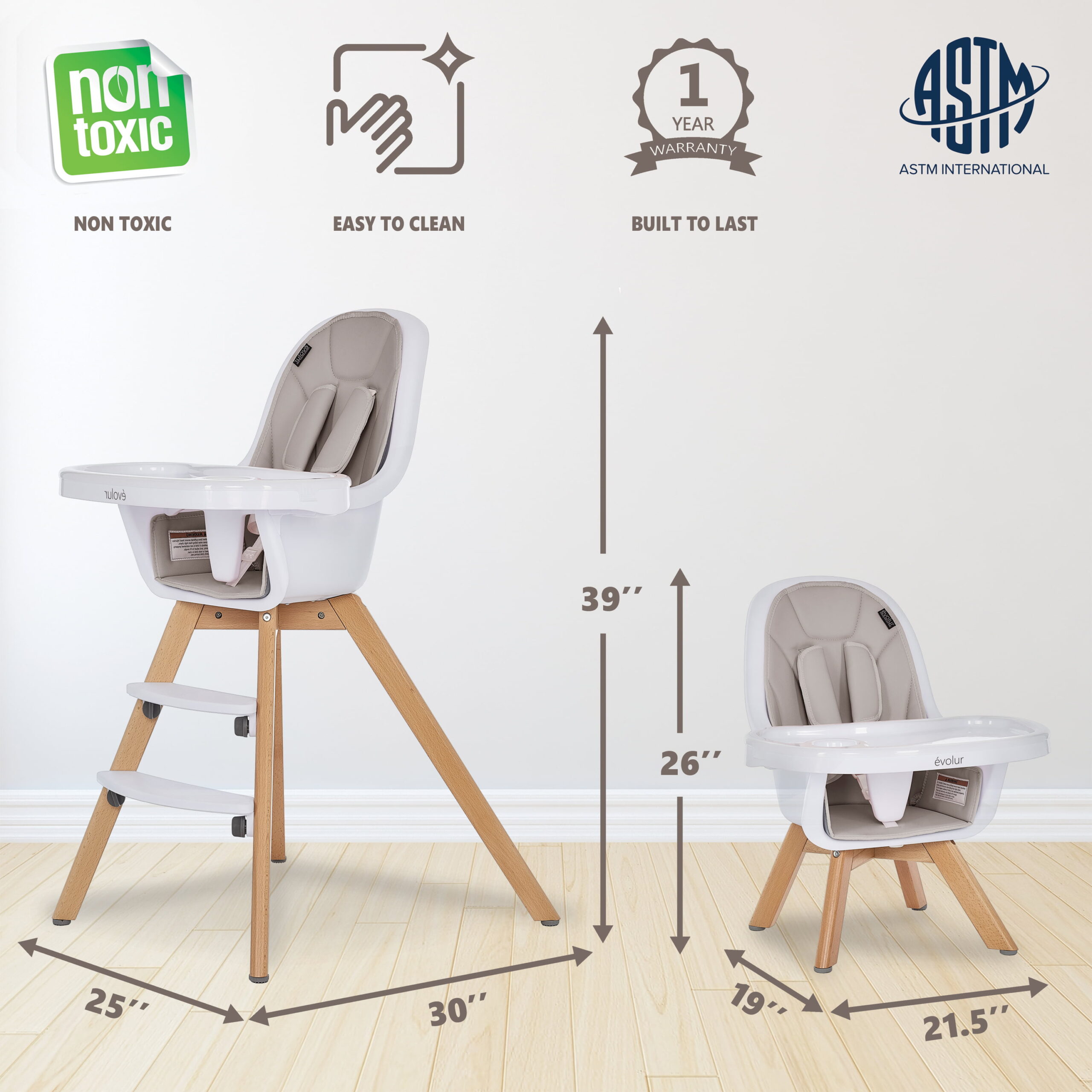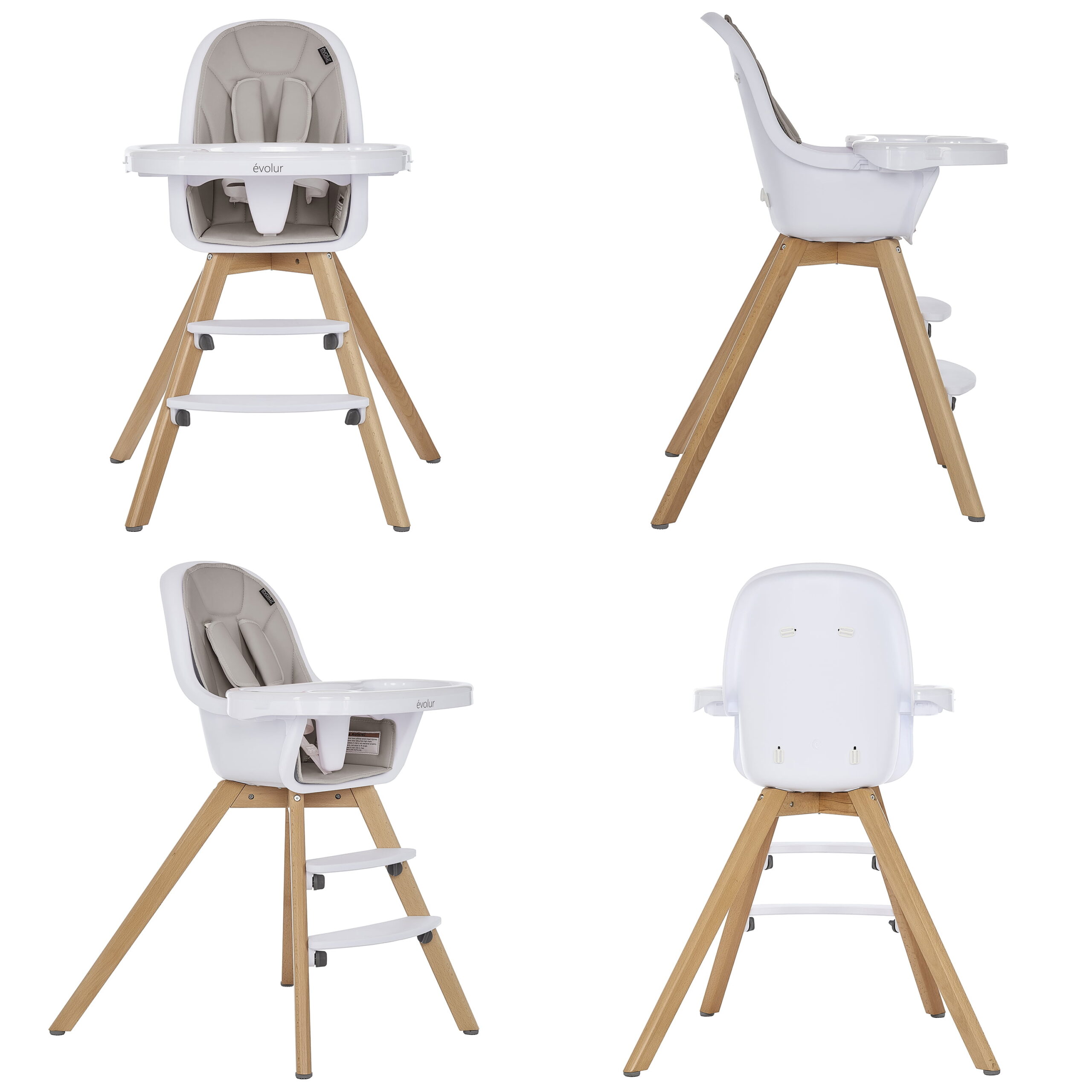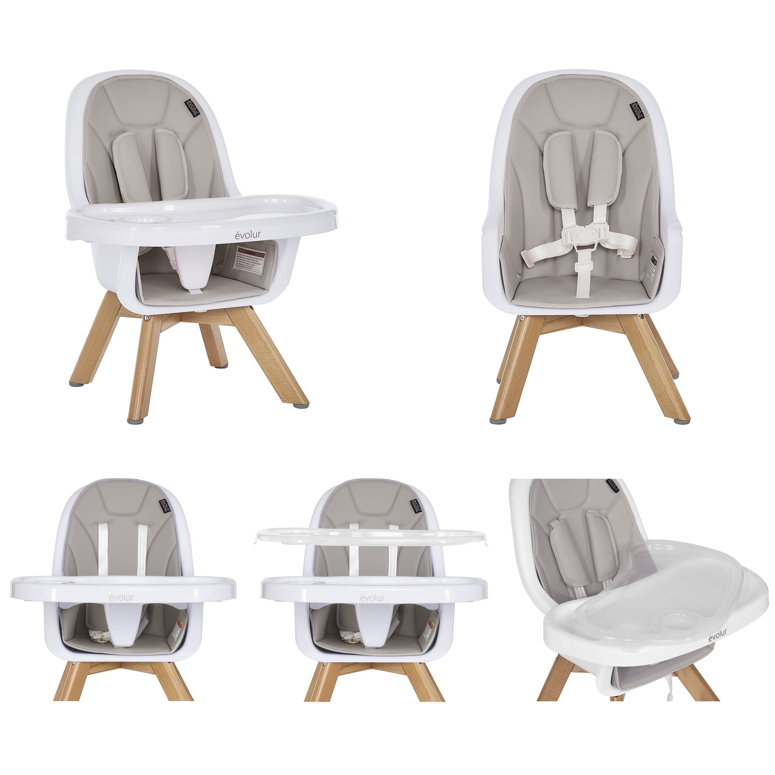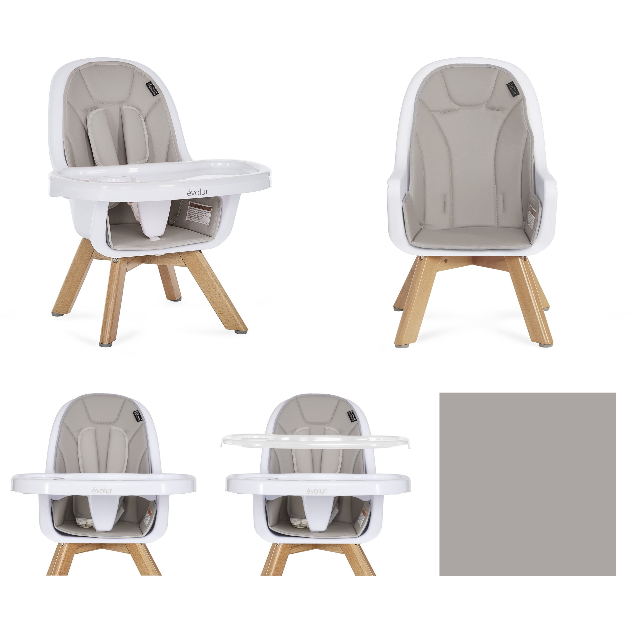 Evolur Zoodle 3-in-1 High Chair Booster Feeding Chair with Modern Design. Light Grey (Model #254)