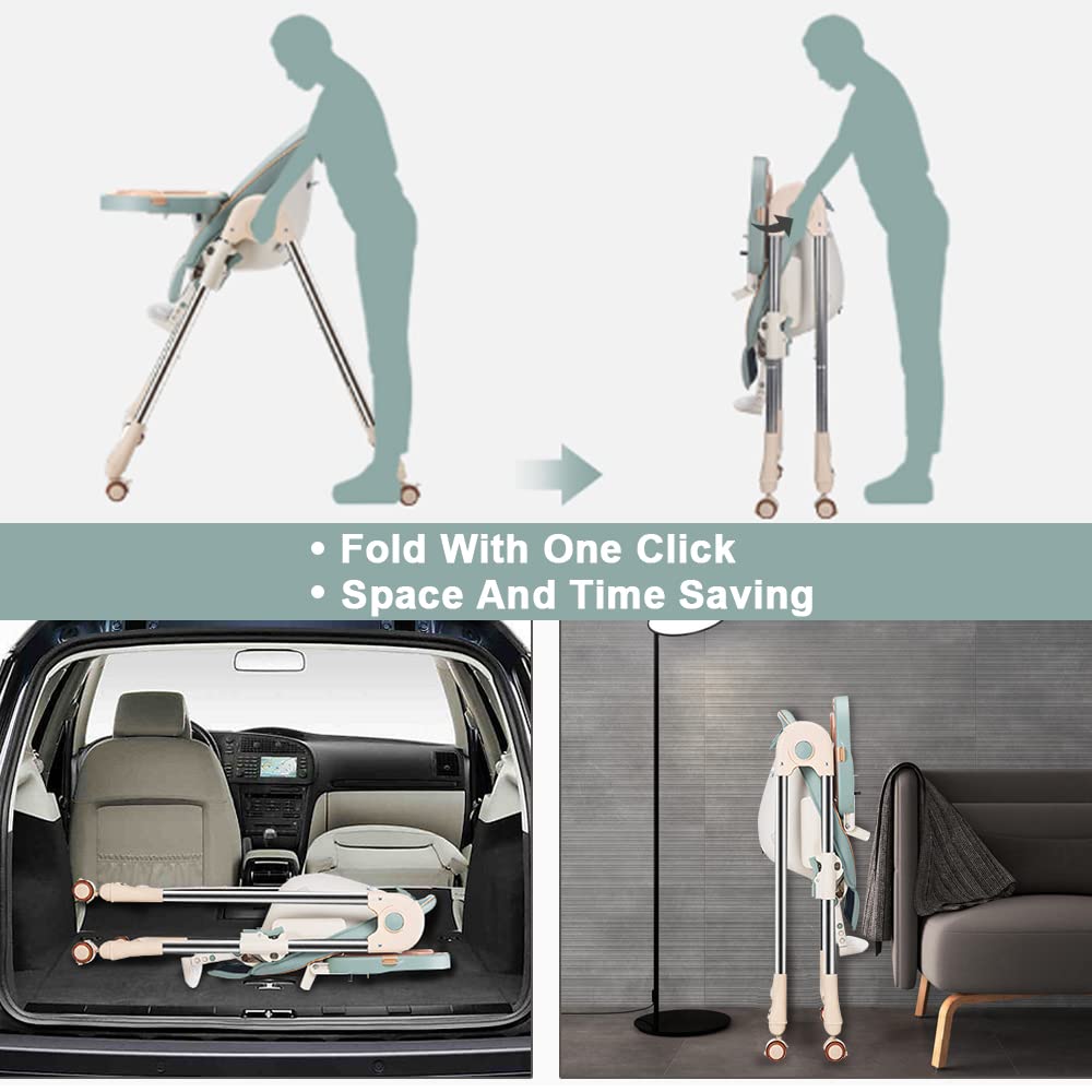 Foinwer 5-in-1 Baby Convertible Highchair Foldable Baby High Chair 4-Ways to Use Unisex Removable Tray (Green)